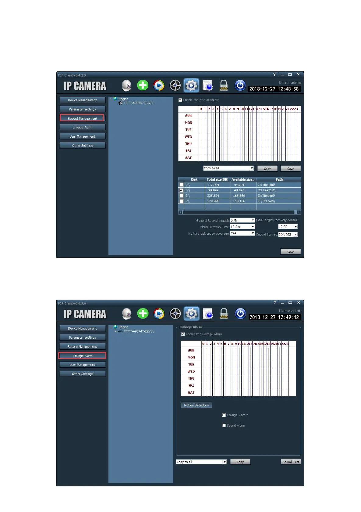 YoLuke P2-20X - 6.3.4.3 Record management; 6.3.4.4 Linkage Alarm