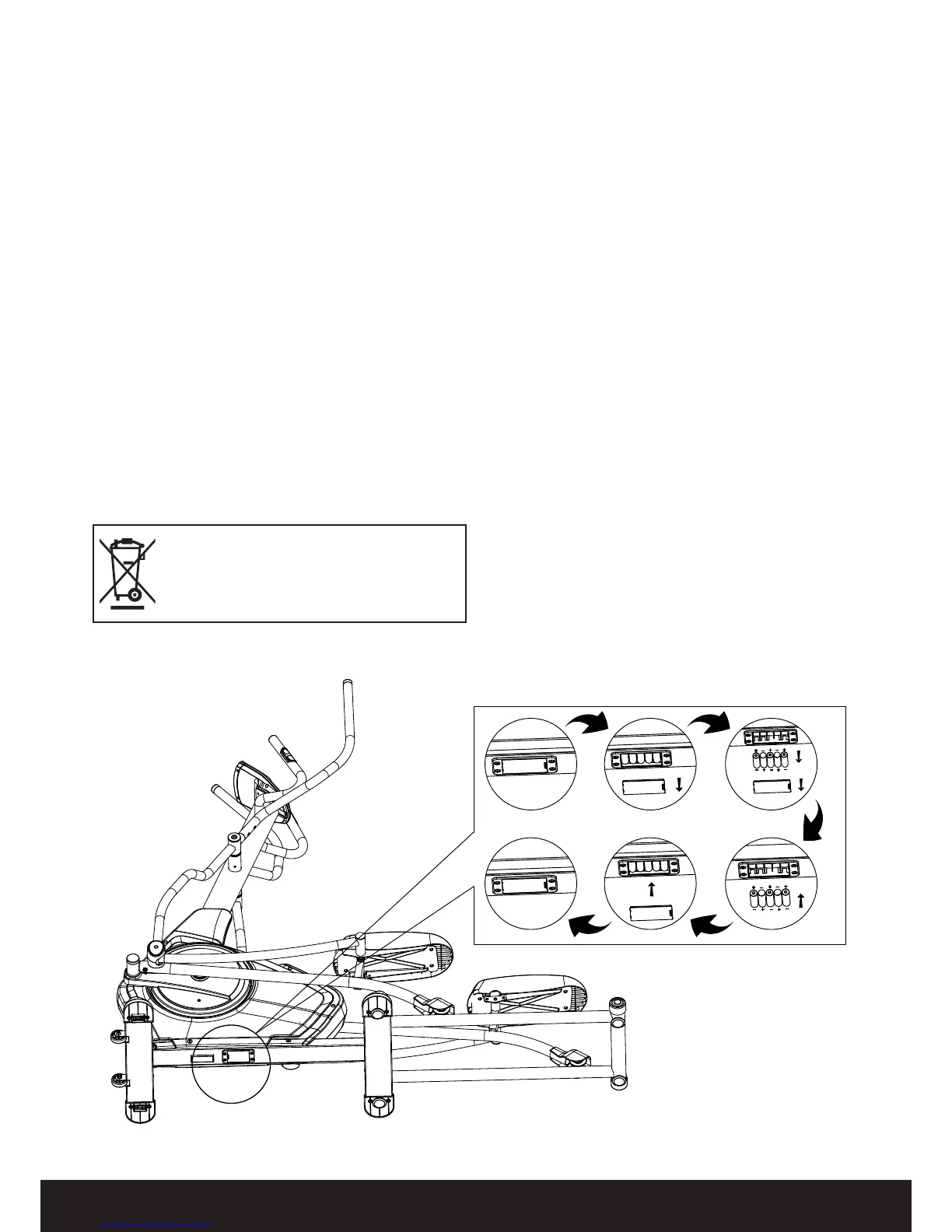 WARNING: The cross trainer use NiMH batteries. Using other types of batteries during