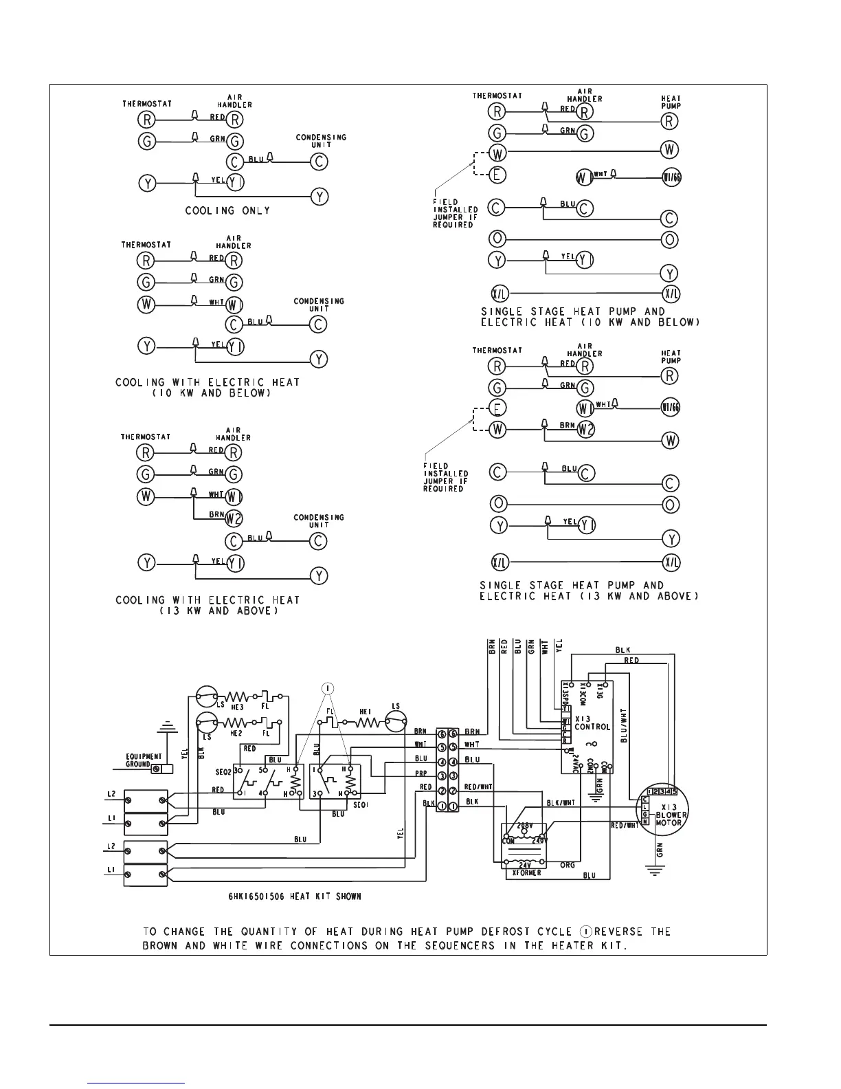 York AHE48D3XH21 - Typical Thermostat Connection
