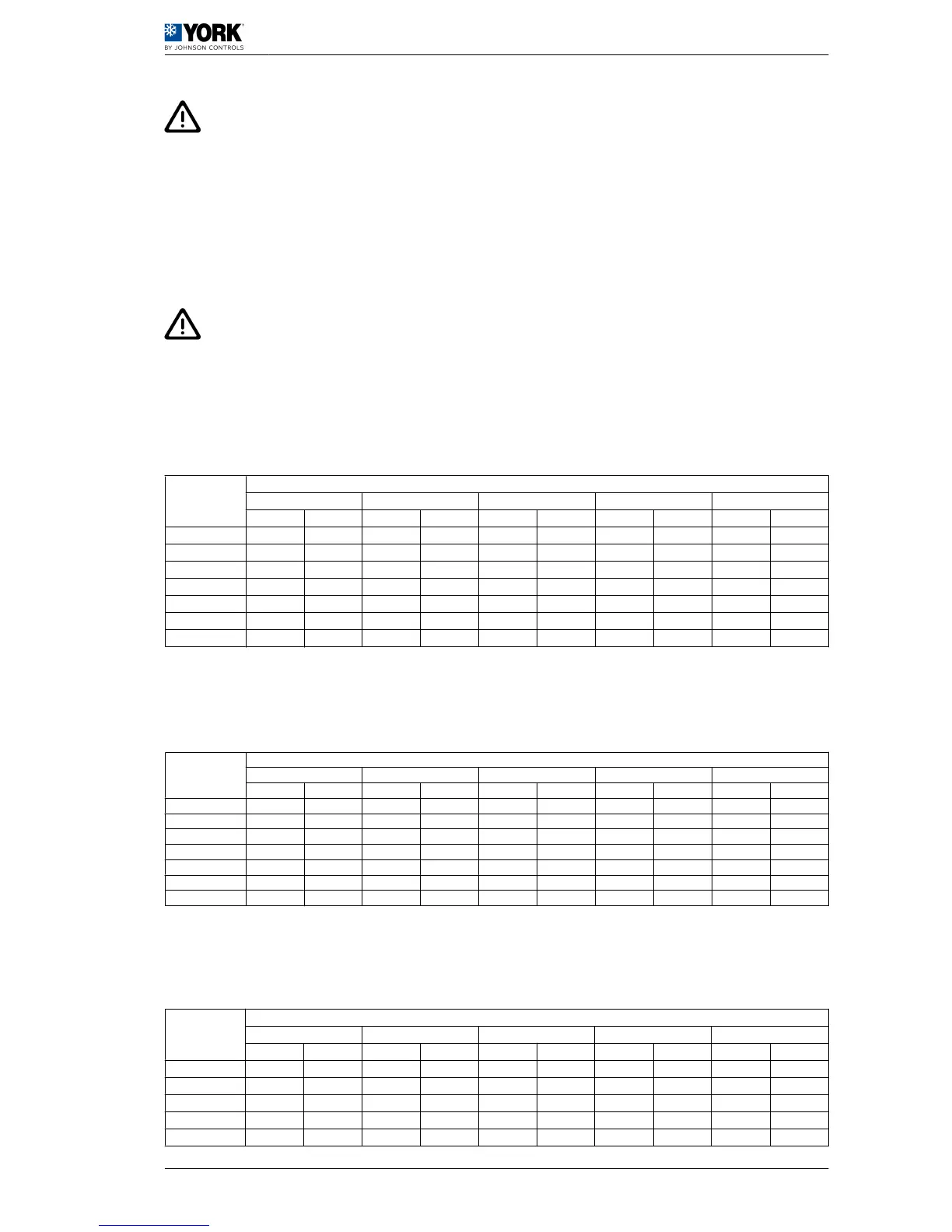 Before consulting the tables, add secure drops to the pressure required for the installation due to: