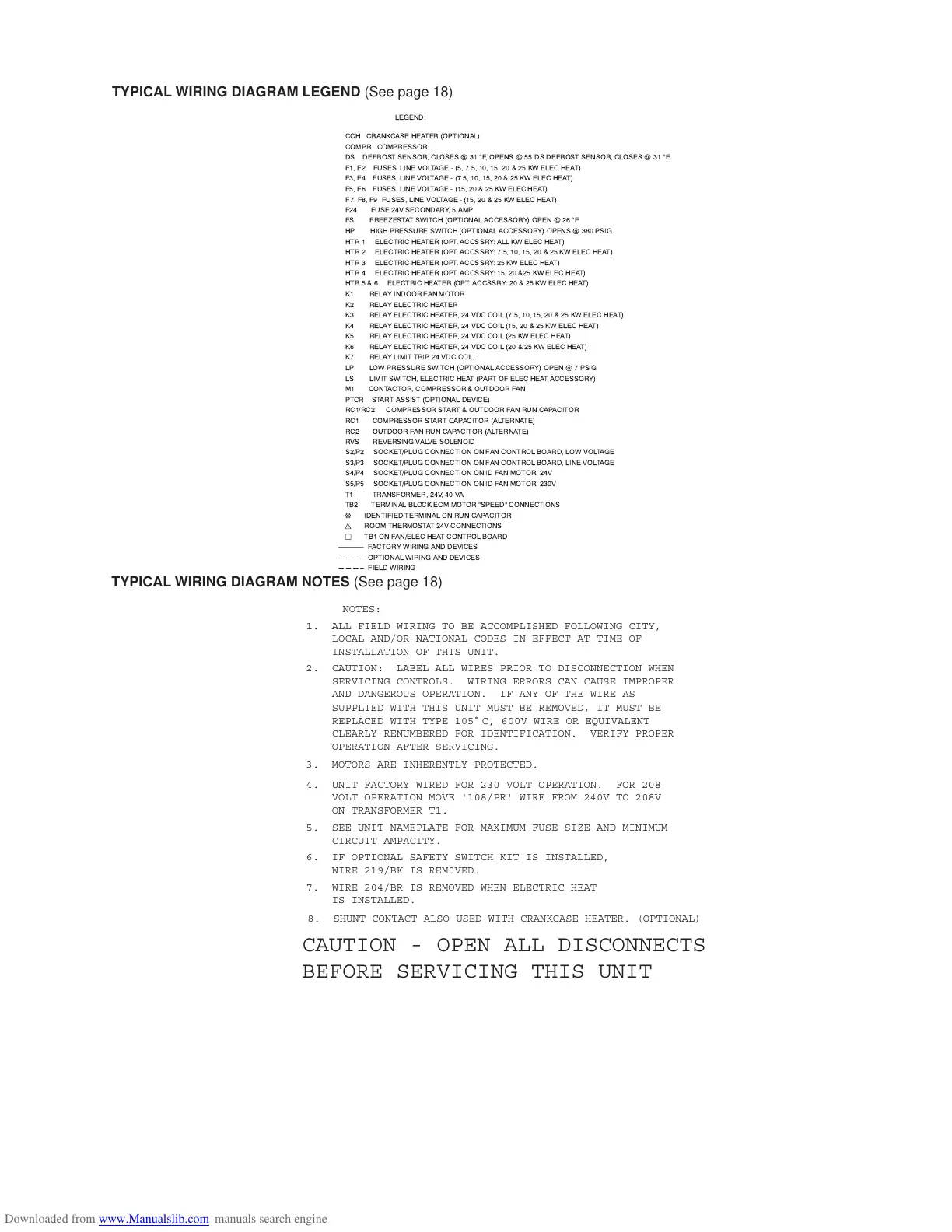 TYPICAL WIRING DIAGRAM LEGEND (See page 18)