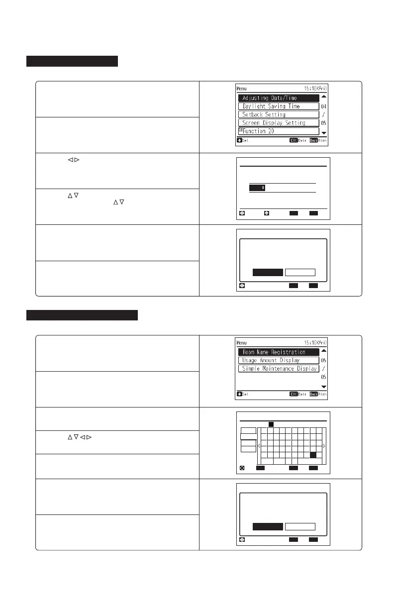 A name of the room (installation location of controller) can be registered from “Room Name Registration”.