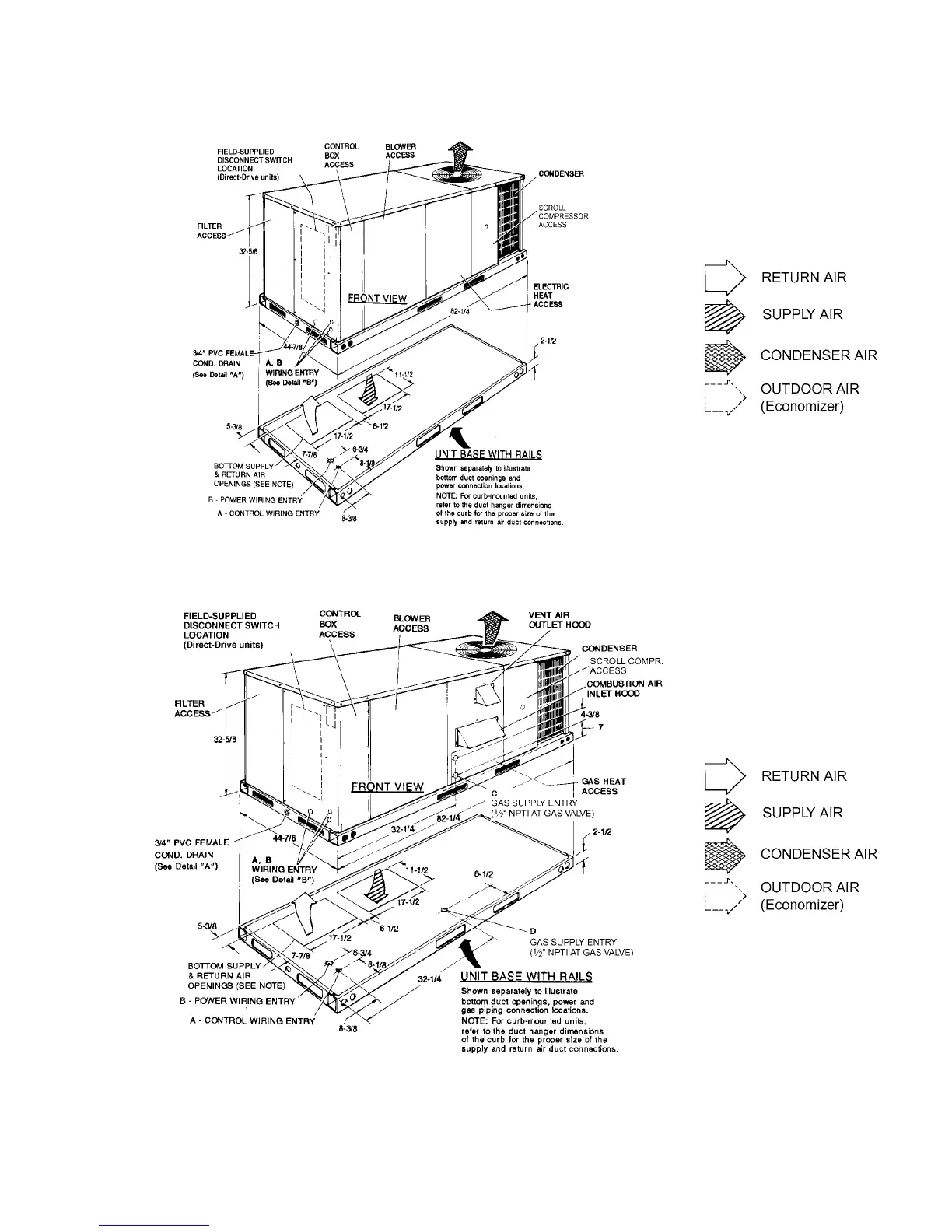 York DH 036 - Unit Dimensions (3 - 5 Ton Cooling Only;Electric Heat) Front View; Unit Dimensions (3 - 5 Ton Cooling;Gas Heat) Front View