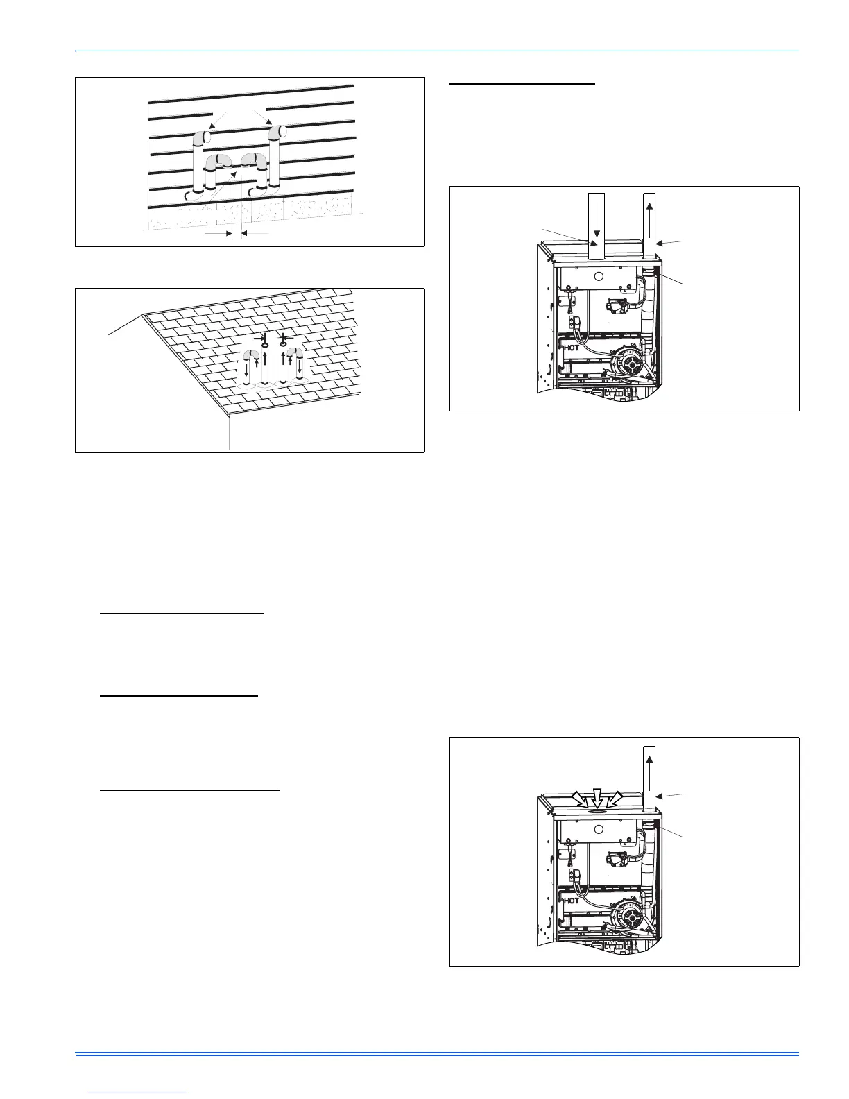 wall (horizontal or side vent) or through the roof (vertical vent). Care