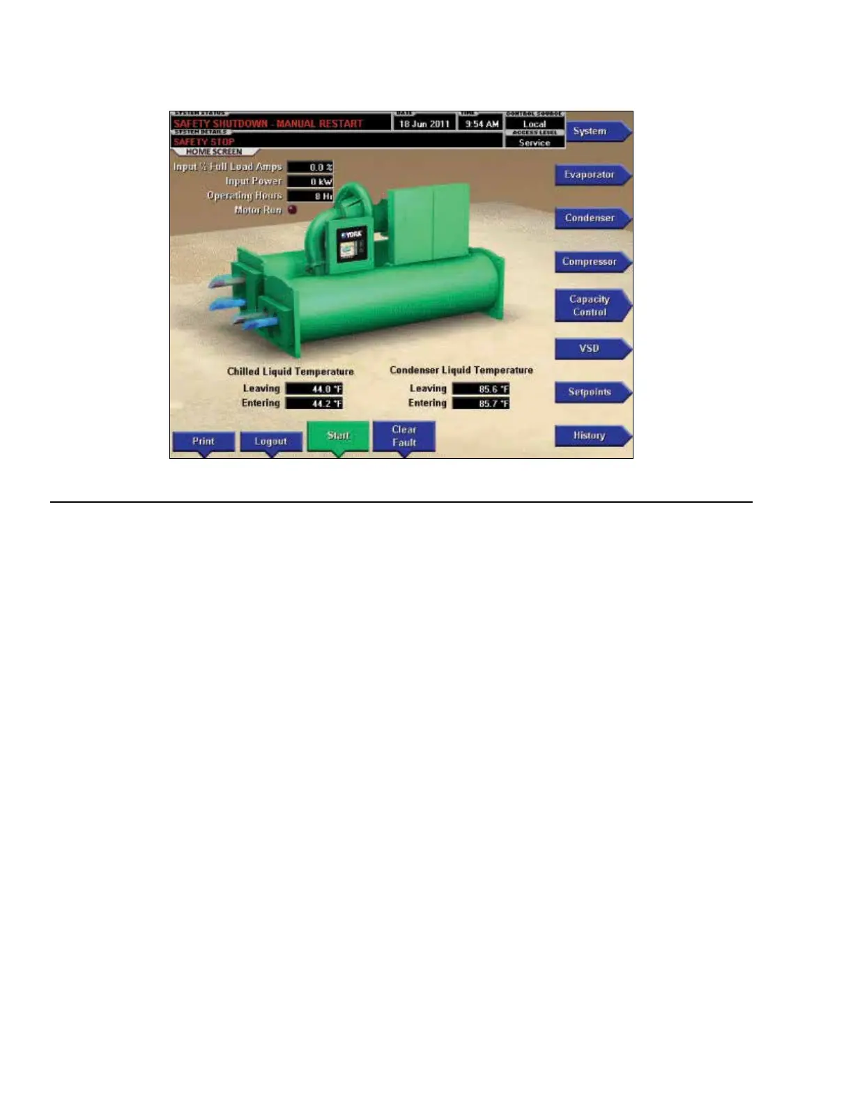 VIEW. In this mode, the chiller operating values and