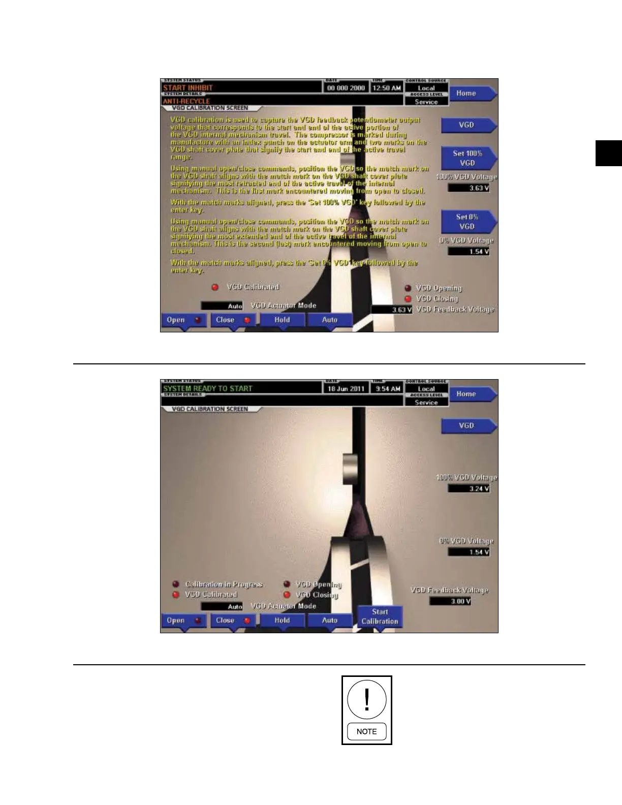 VARIABLE GEOMETRY DIFFUSER CALIBRATION SCREEN