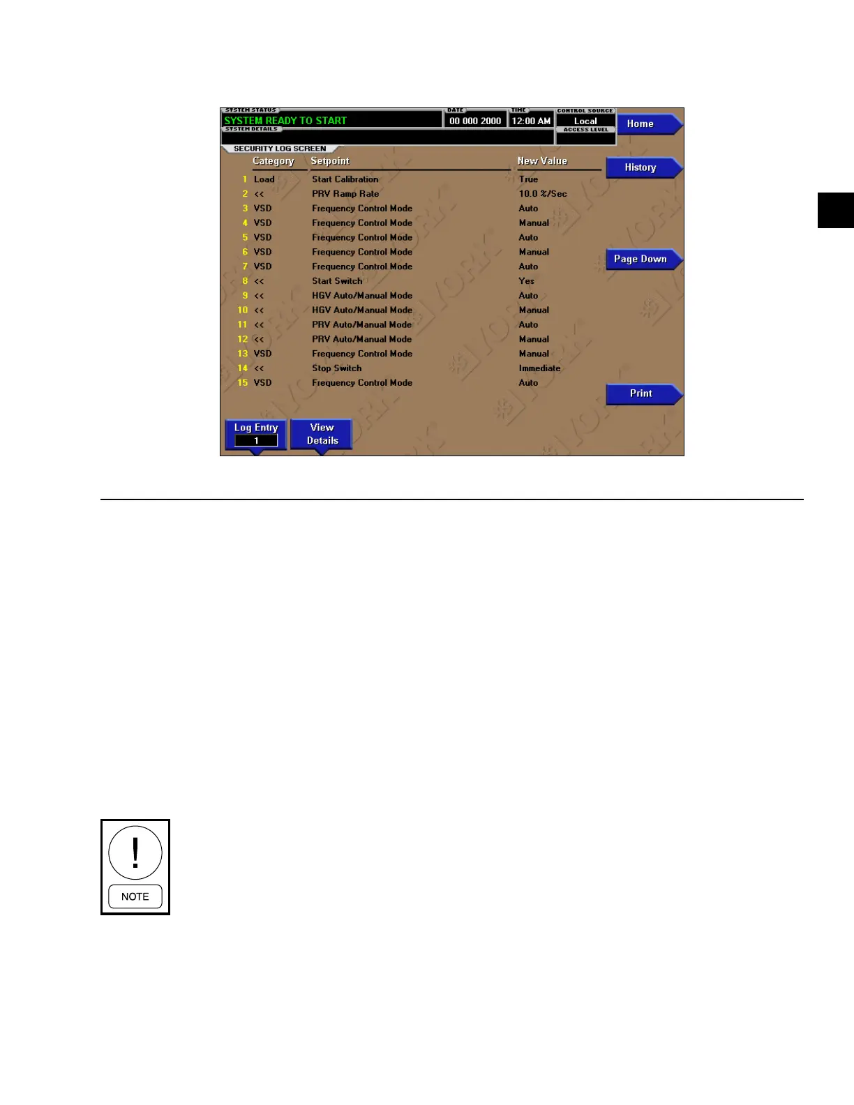 FIGURE 42 - SECURITY LOG SCREEN