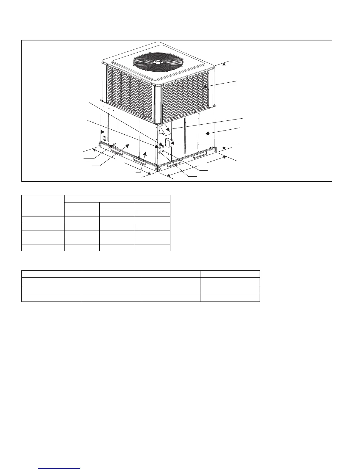 3. Units must be installed outdoors. Over hanging structure or shrubs should not obstruct condenser air discharge outlet.