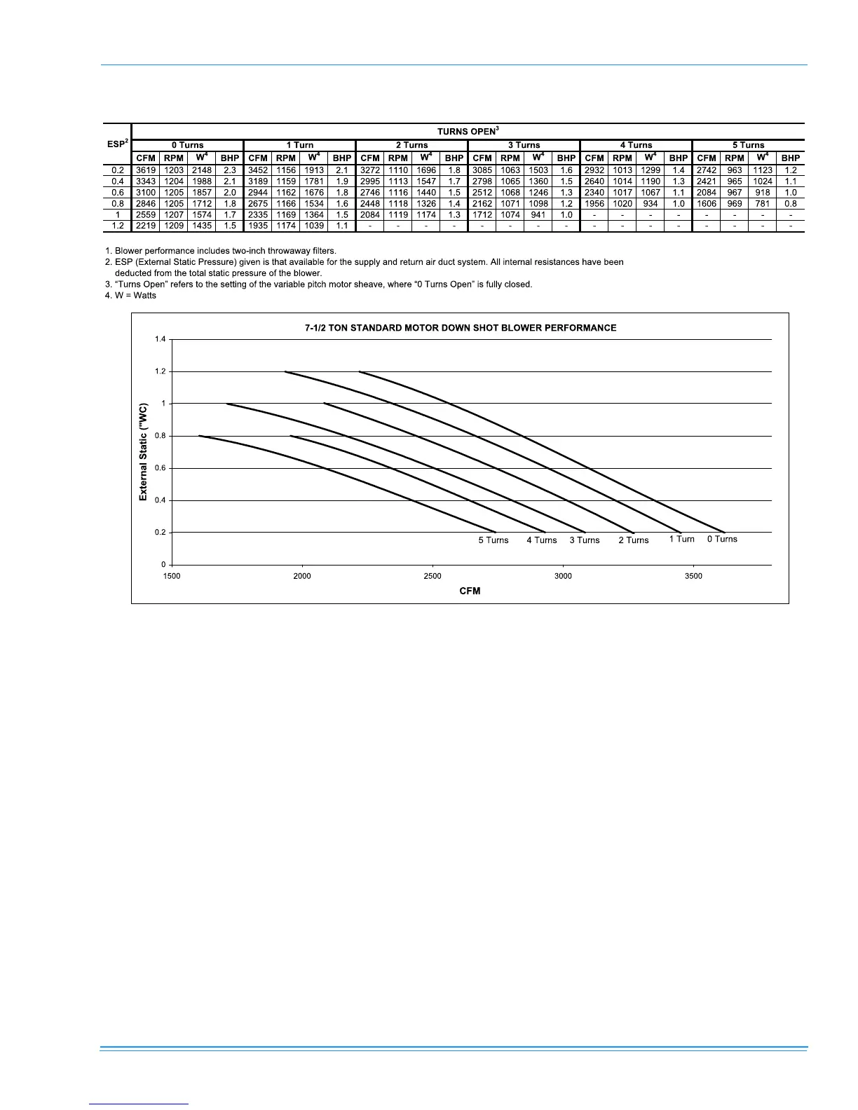 TABLE 24: 7-1/2 TON STANDARD MOTOR DOWN SHOT BLOWER PERFORMANCE