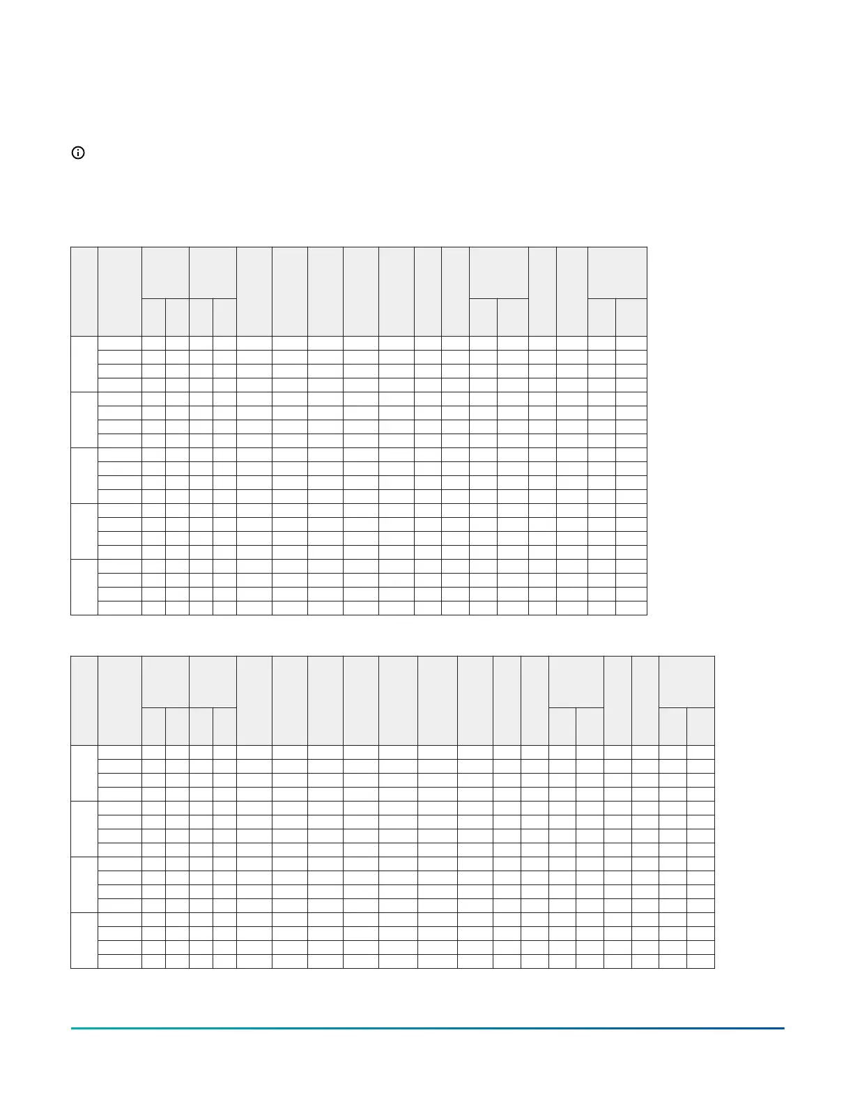 Table 9: YV28 to YV50 Constant volume standard static without power exhaust
