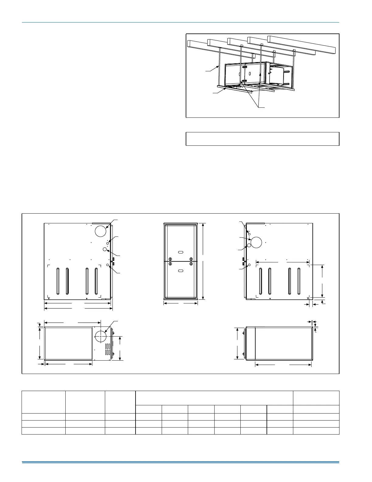 Units may also be suspended from rafters or floor joists using rods, pipe