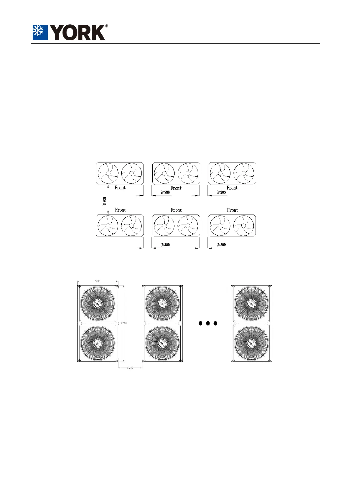 obstructions allowed; distance between adjacent units – 300mm or 400mm. No more than one