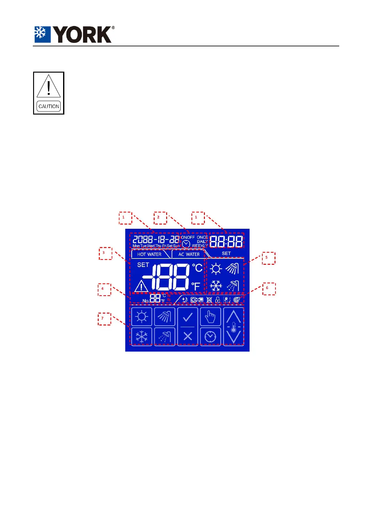 The touch screen wire controller is standard for remote controls of YCAE units. The functions of