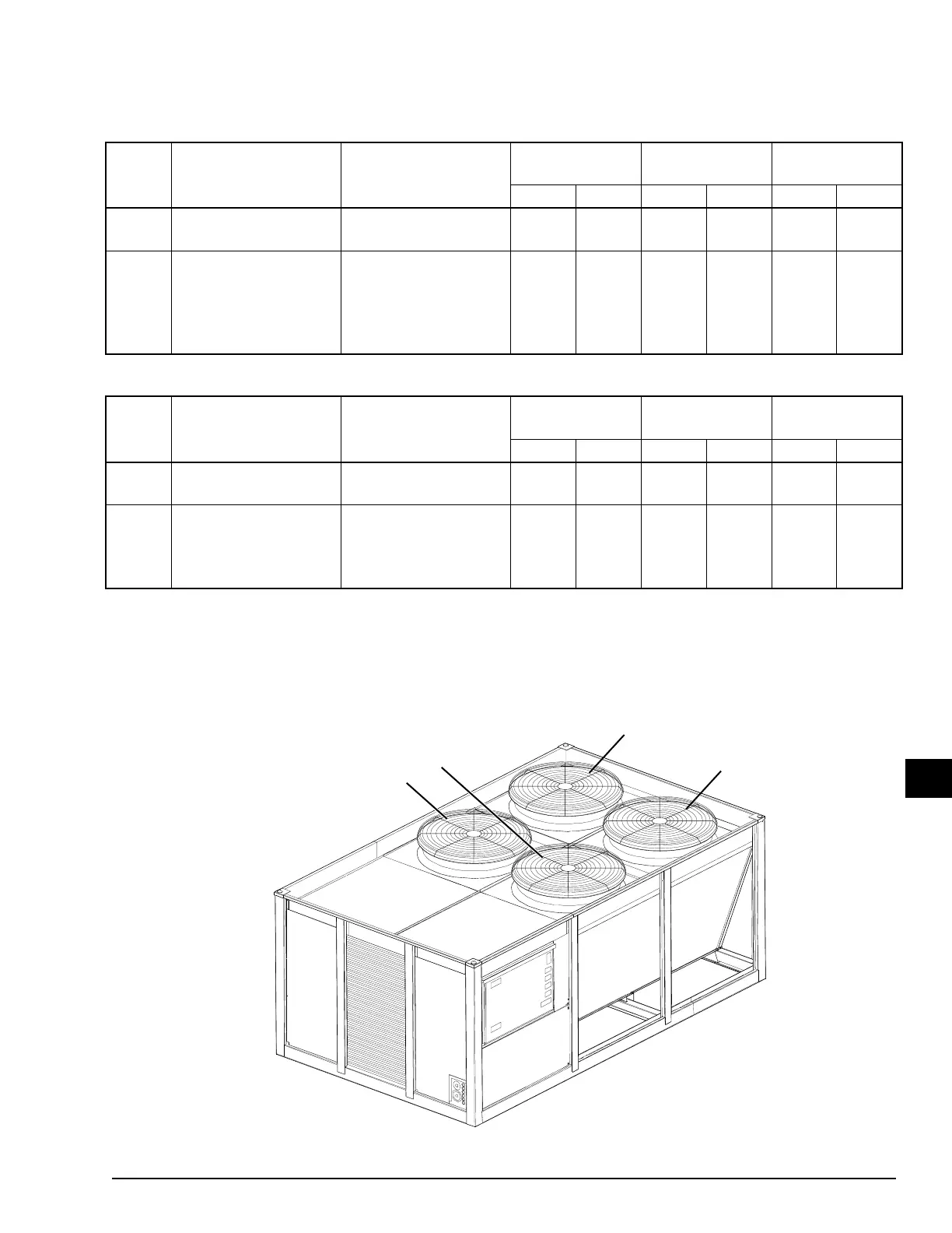 FIGURE 44 - YCAL0043 – YCAL0066 FAN LOCATION (TYPICAL)