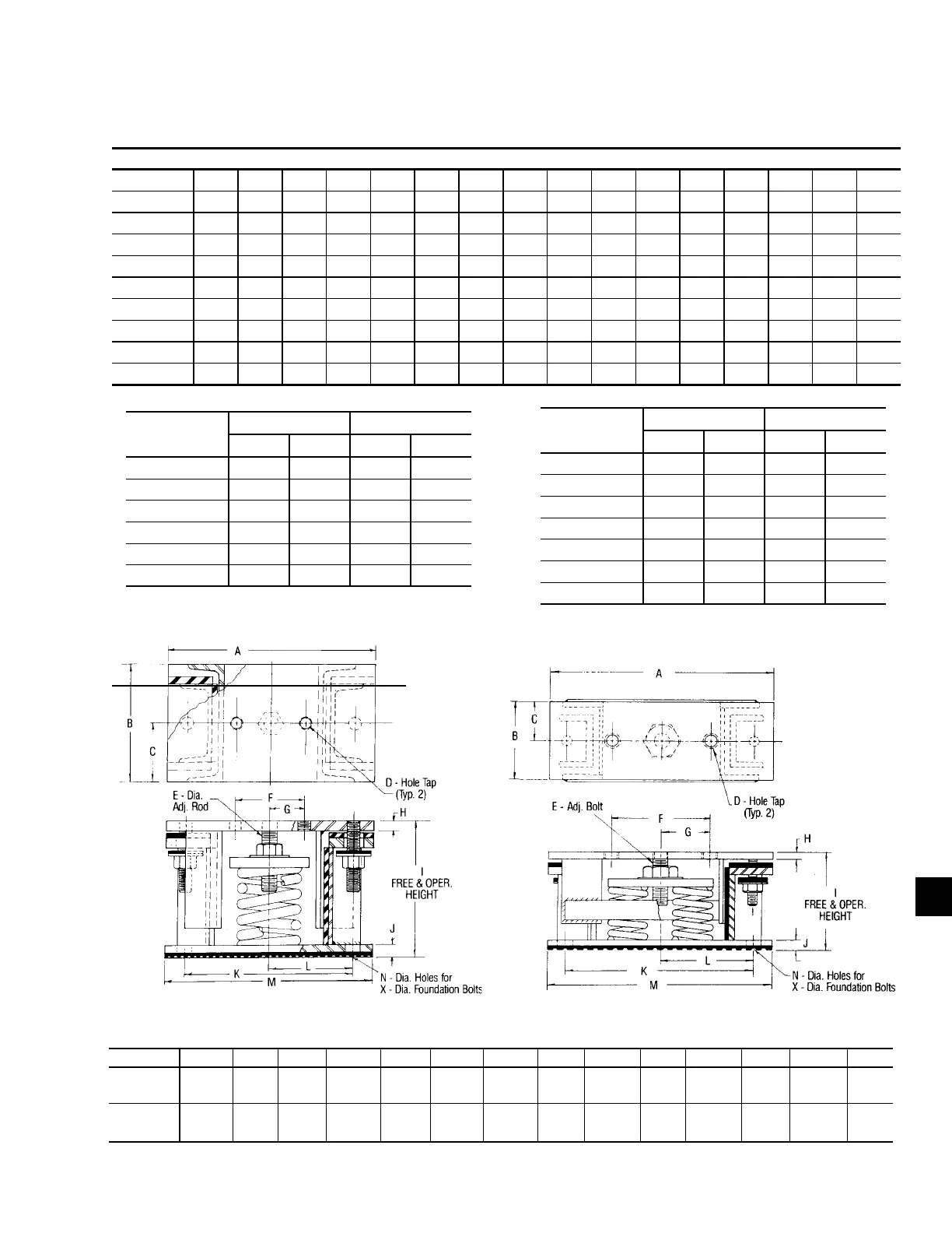 50 HERTZ, AL. FINS, SEISMIC ISOLATOR SELECTIONS - VMC MODEL # AWMR-(SEE TABLE BELOW)