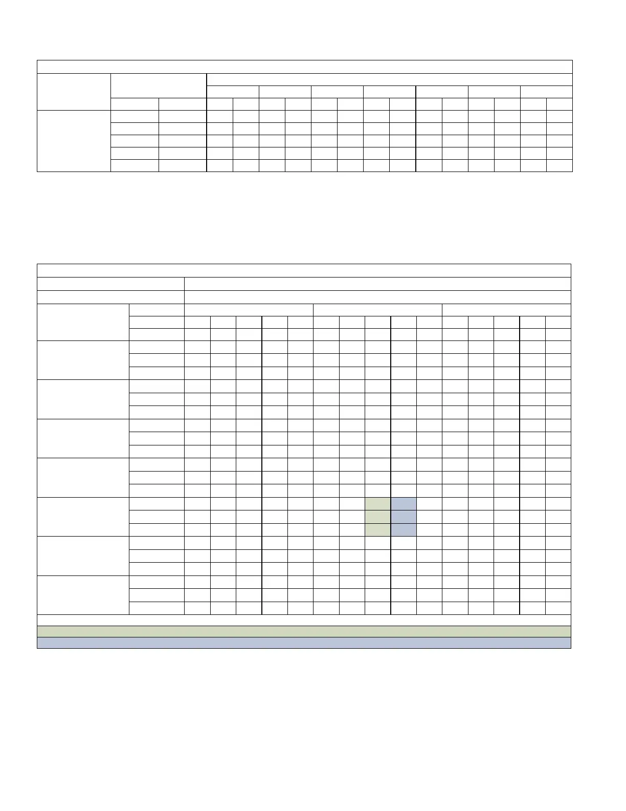 Blue shaded cells are AHRI conditions.