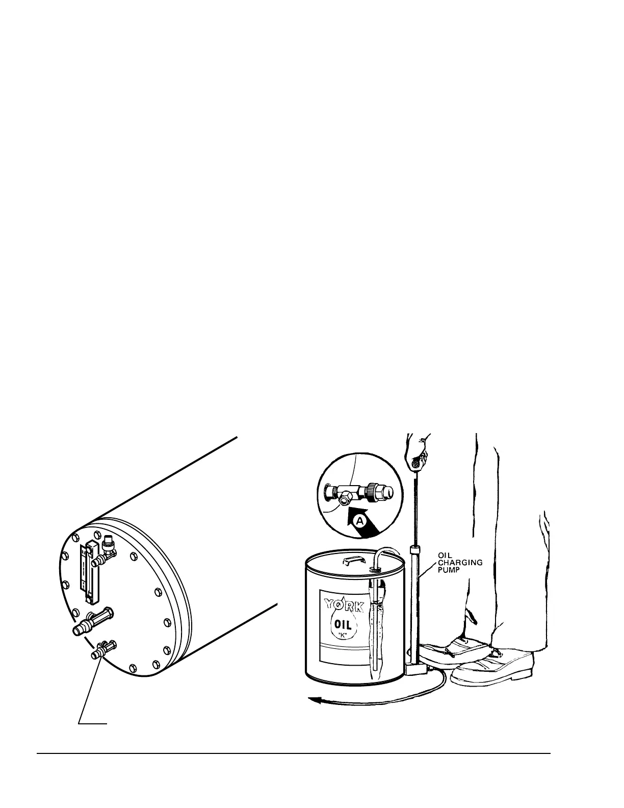 the oil reservoir using the YORK Oil Charging Pump