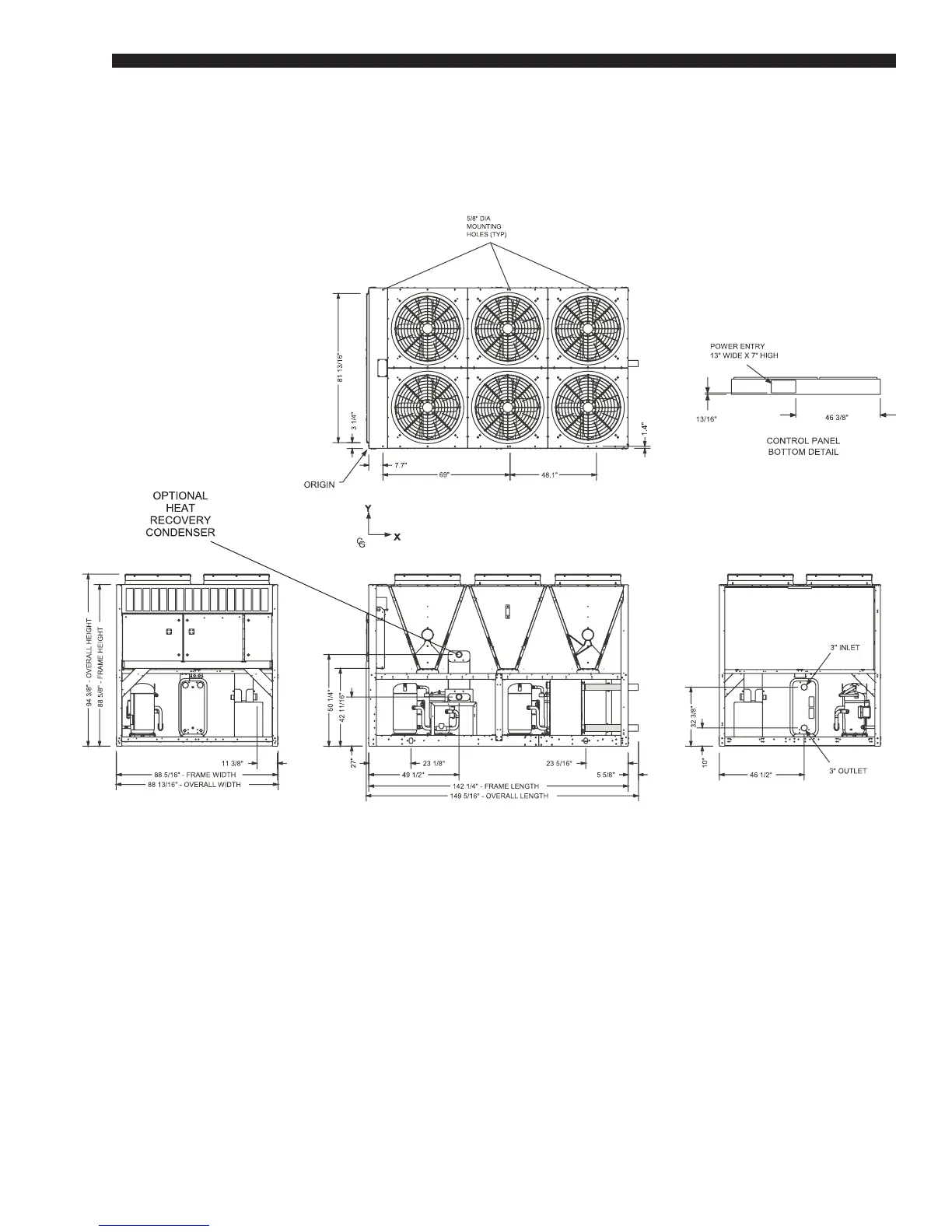 higher than on spring isolators. Recommended minimum clearances: Side to wall – 6'; rear to wall – 6'; control panel to end wall – 4'0'';