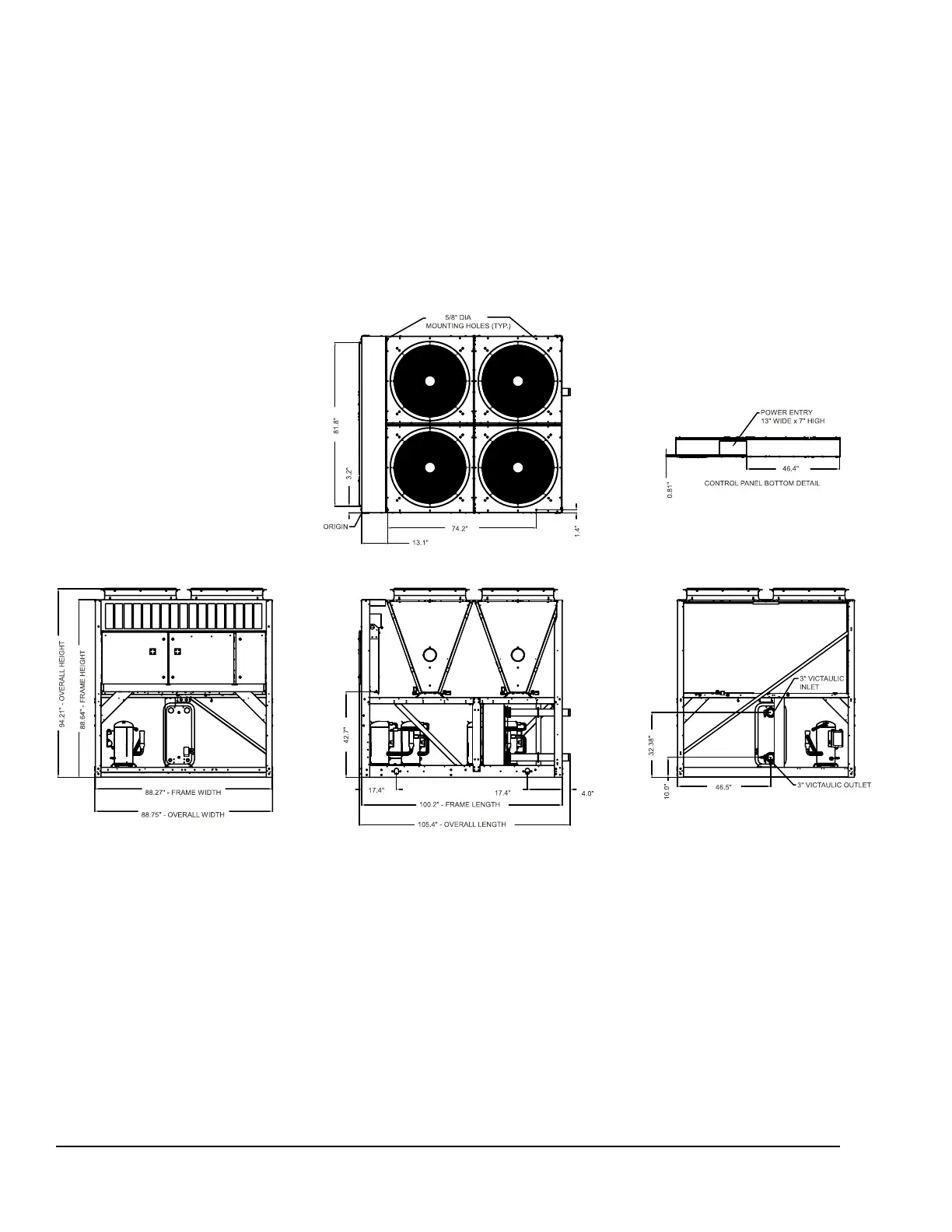 FIGURE 24 - FOUR FAN UNITS DIMENSIONS – YLAA0058HE, YLAA0065HE, YLAA0081HE