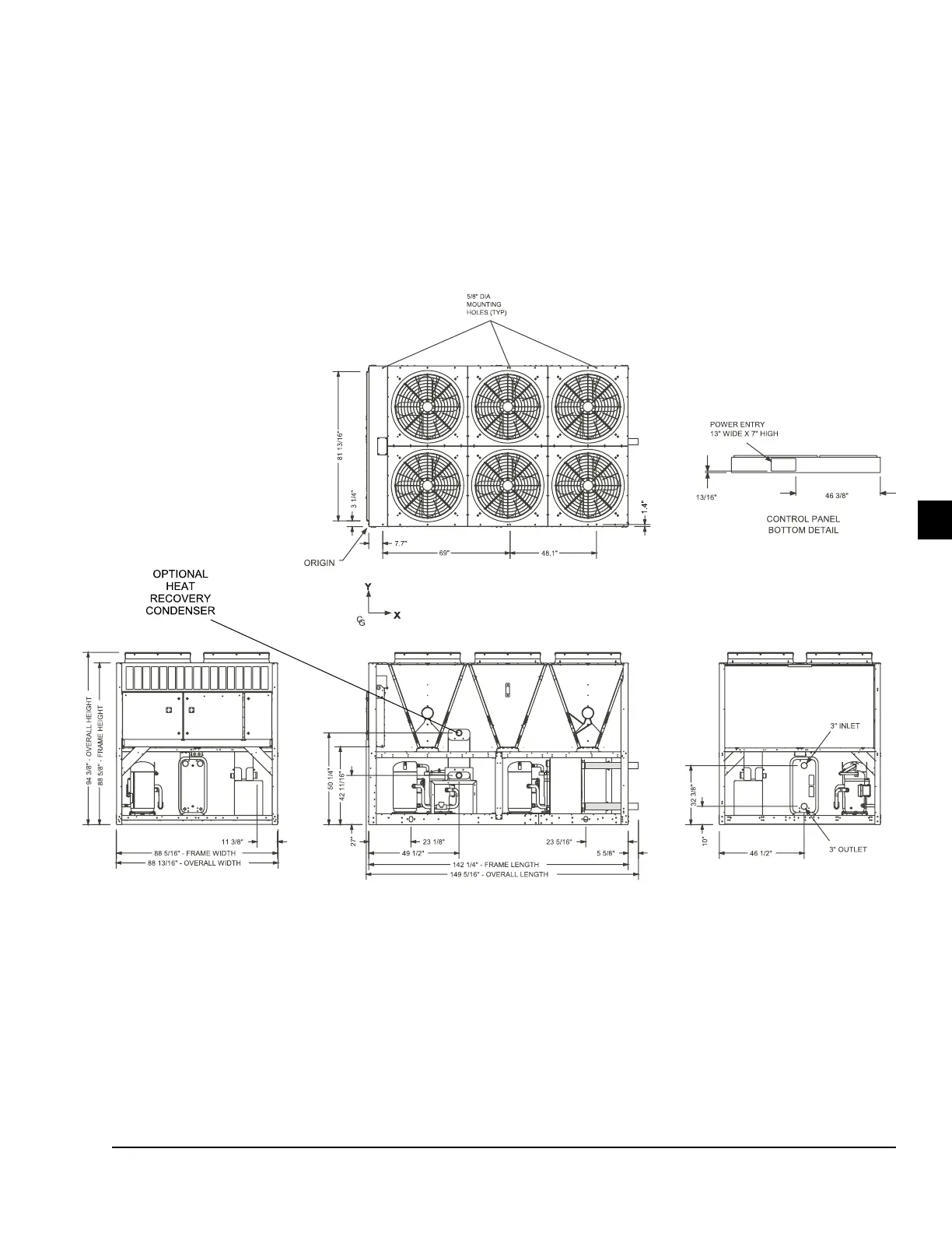 FIGURE 27 - SIX FAN UNITS DIMENSIONS – YLAA0120SE, YLAA0092HE, YLAA0101HE