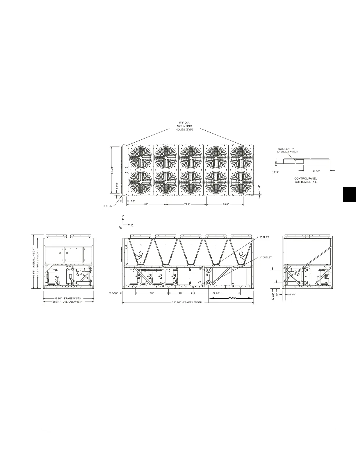 FIGURE 29 - TEN FAN UNITS DIMENSIONS – YLAA0170SE, YLAA0156HE, YLAA0175HE