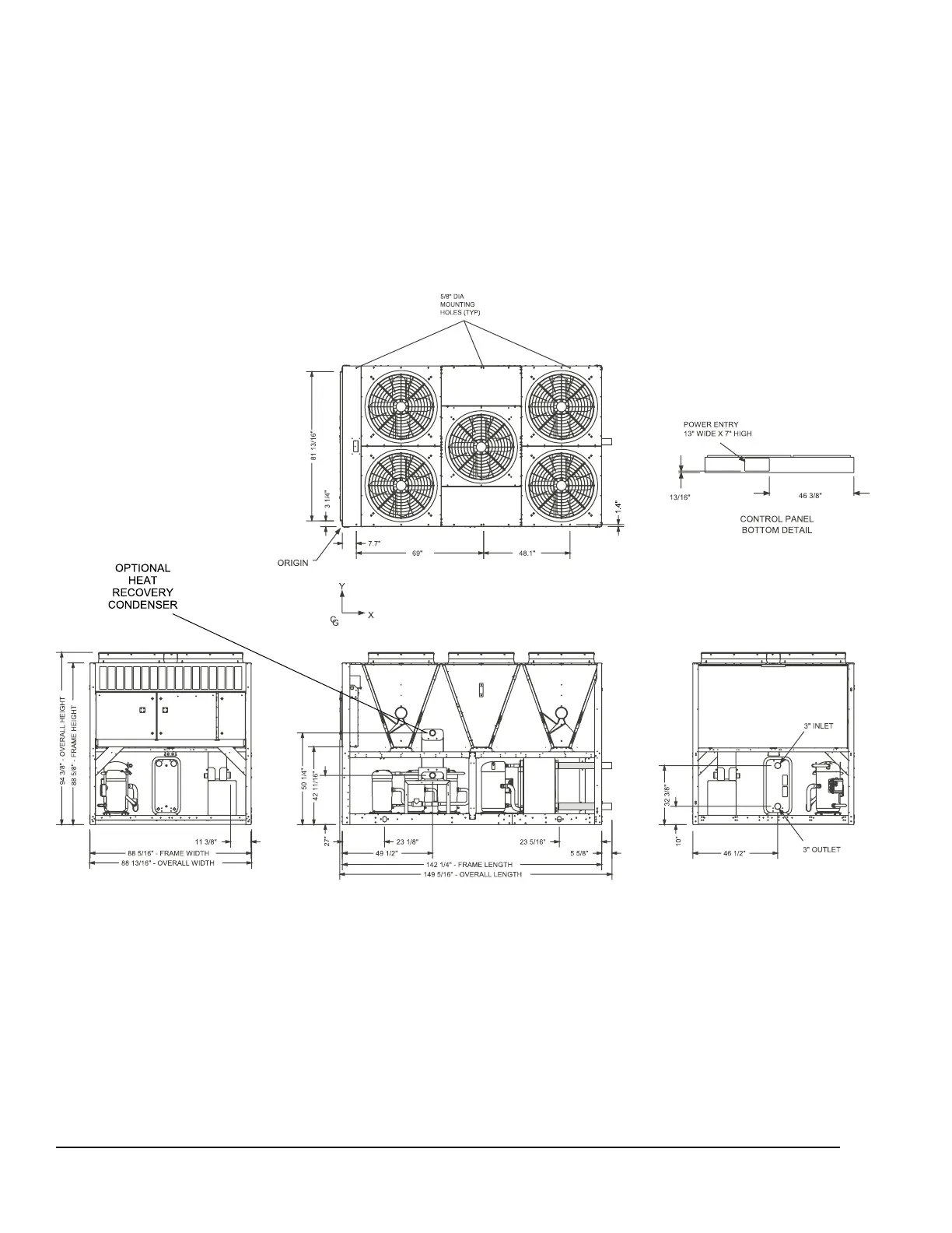 FIGURE 26 - FIVE FAN UNITS DIMENSIONS – YLAA0100SE