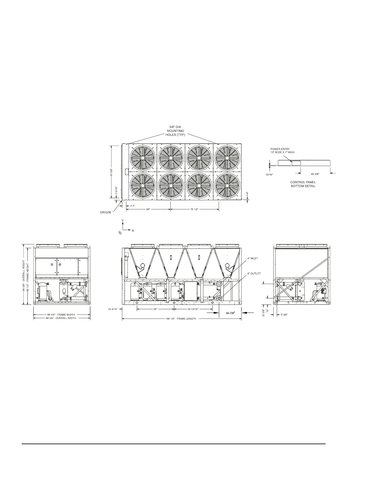 FIGURE 28 - EIGHT FAN UNITS DIMENSIONS – YLAA0136SE, YLAA0155SE, YLAA0142HE