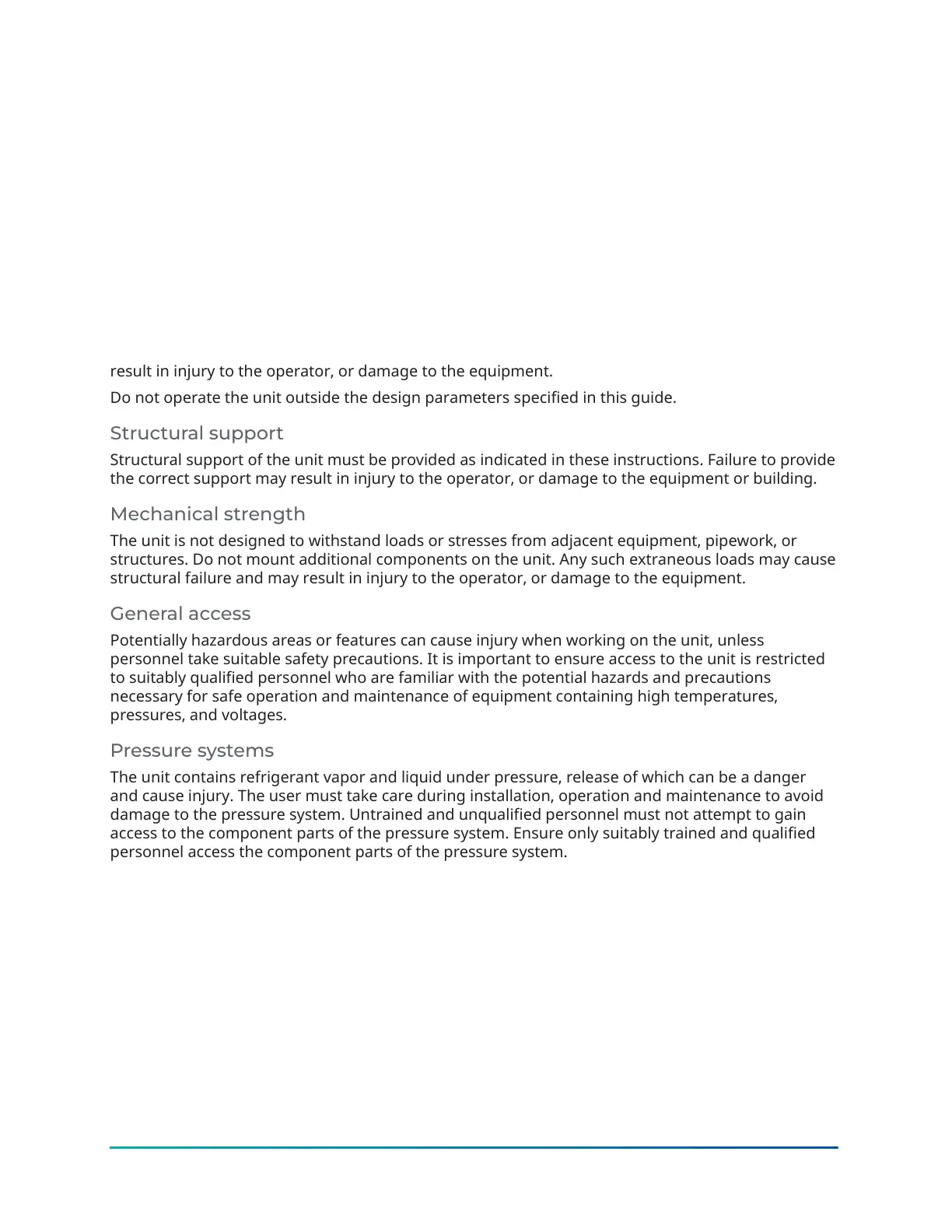 The unit is not designed to withstand loads or stresses from adjacent equipment, pipework, or
