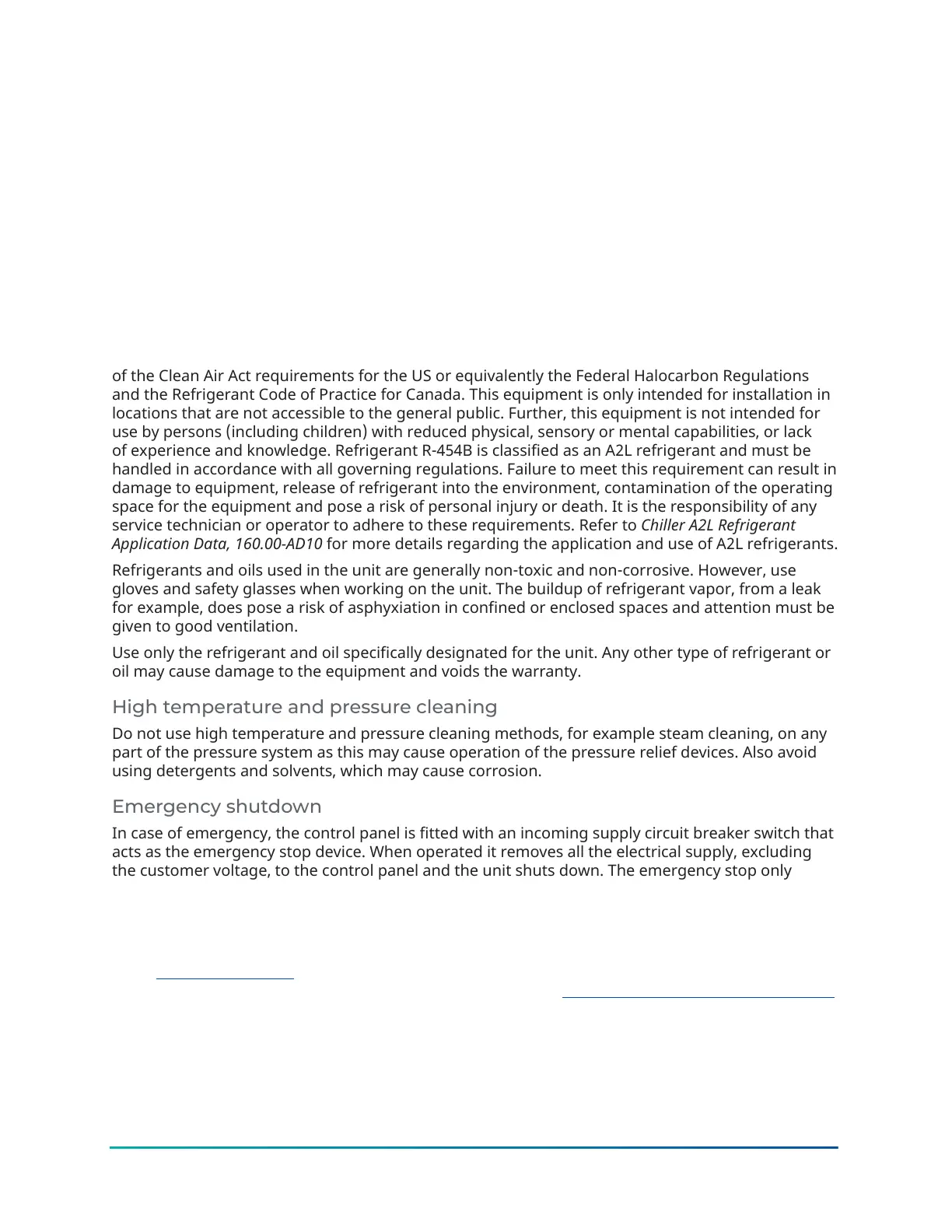 service technician or operator to adhere to these requirements. Refer to Chiller A2L Refrigerant
