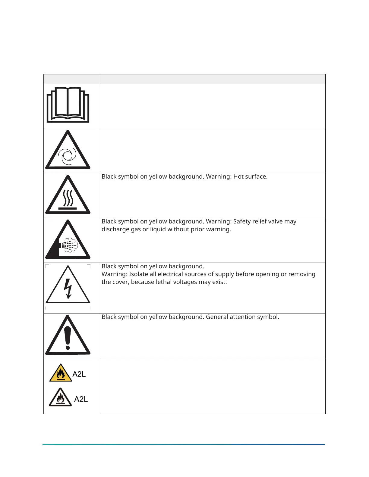 The following labels are fixed to each unit to give instruction or to indicate potential hazards that