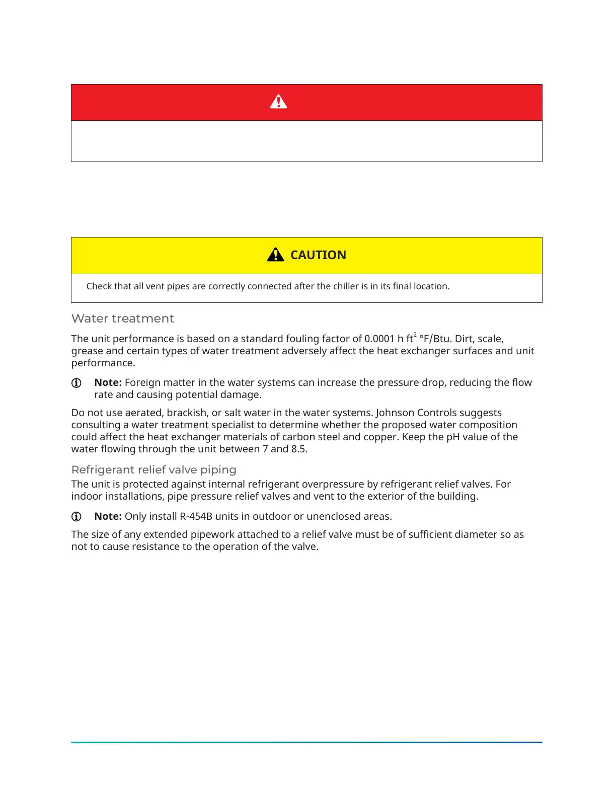 Do not use aerated, brackish, or salt water in the water systems. Johnson Controls suggests