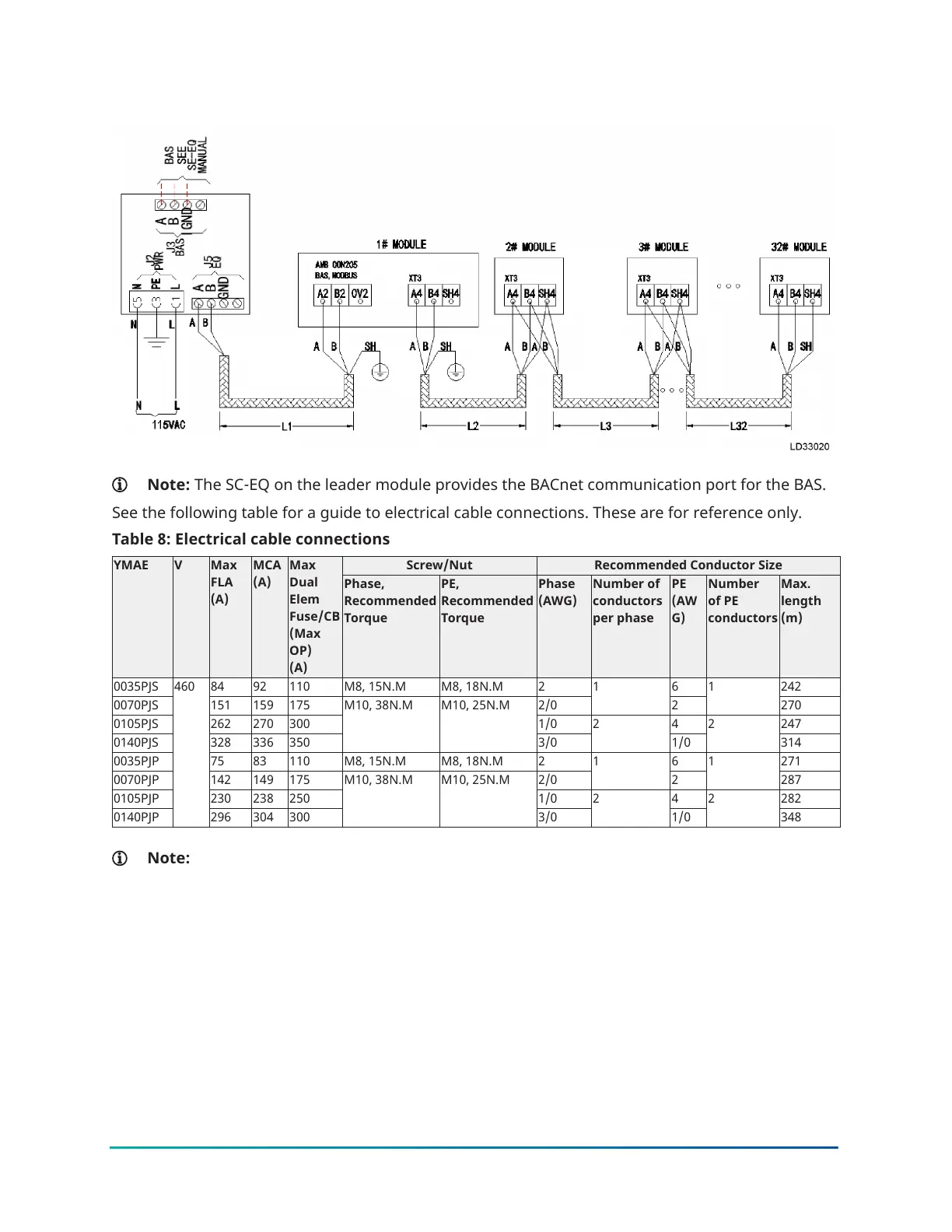 Note: The SC-EQ on the leader module provides the BACnet communication port for the BAS.