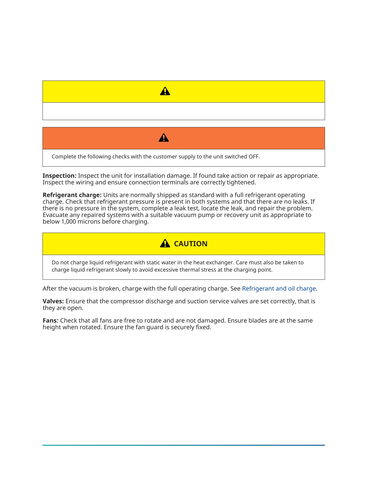 Refrigerant charge: Units are normally shipped as standard with a full refrigerant operating