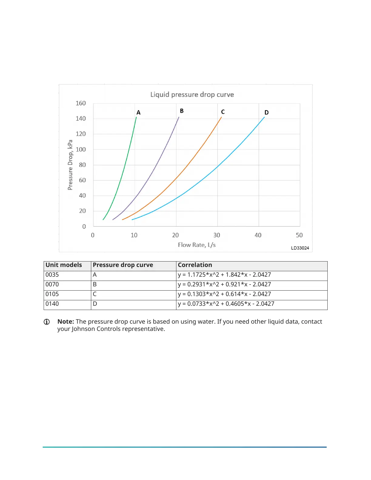 Note: The pressure drop curve is based on using water. If you need other liquid data, contact