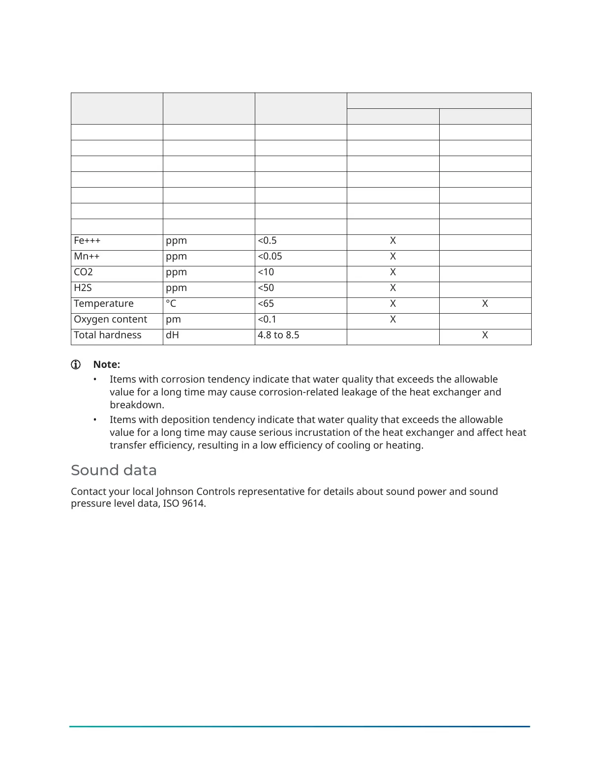 • Items with corrosion tendency indicate that water quality that exceeds the allowable