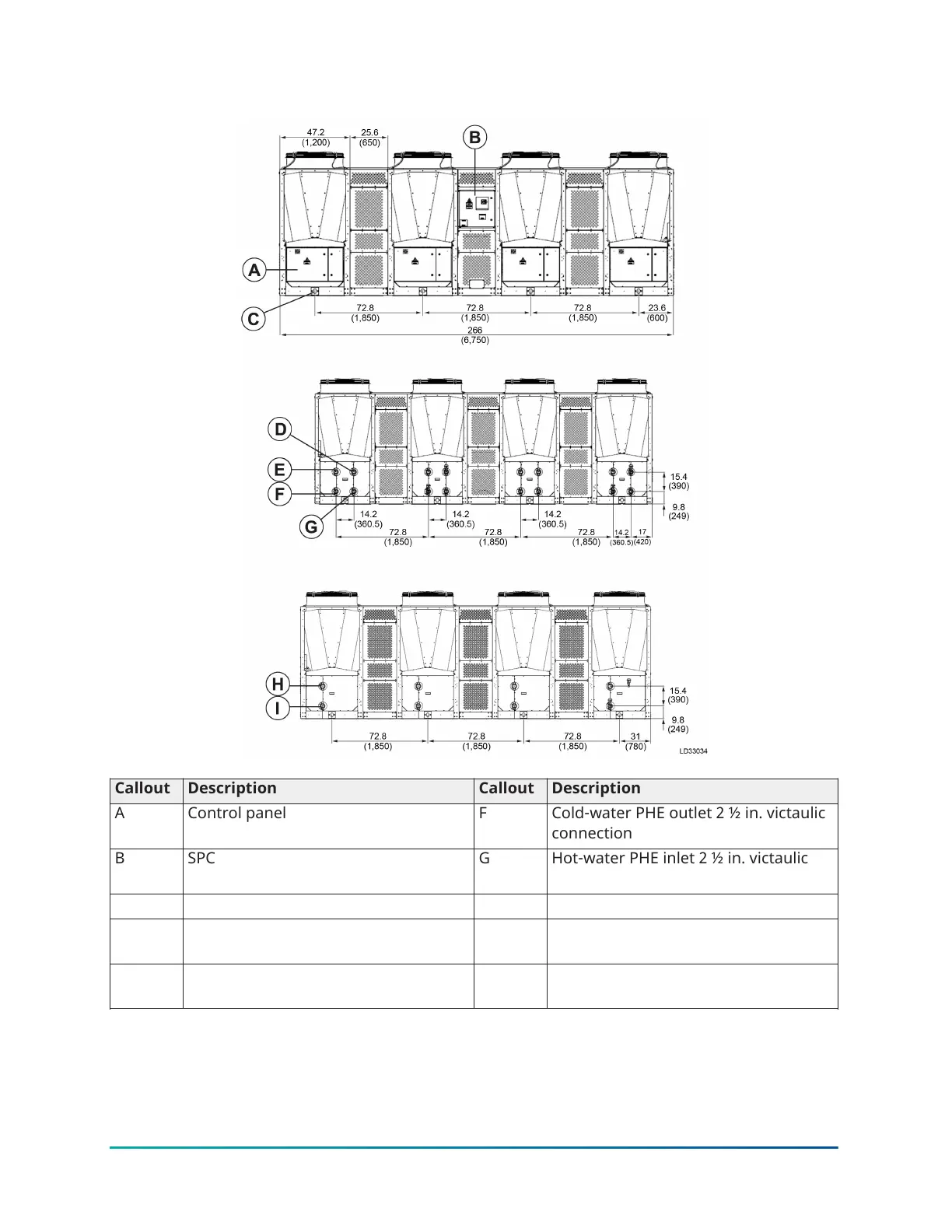 C Rigging holes H PHE inlet 2 ½ in. victaulic connection
