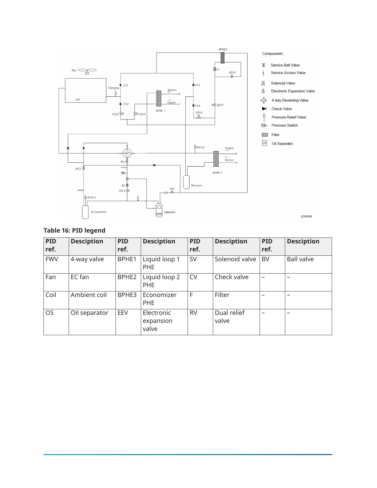 Table 16: PID legend