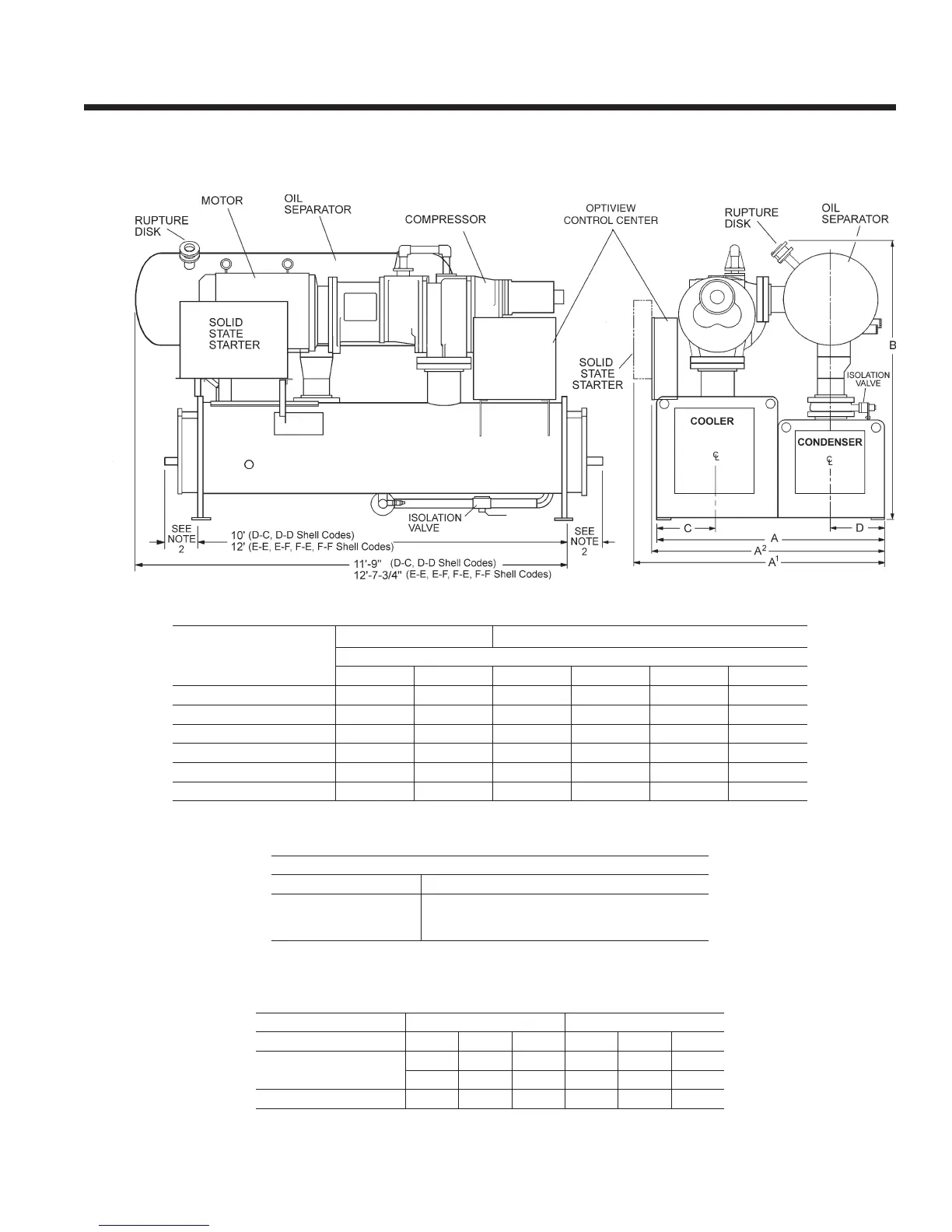 3. Unit height includes steel mounting plates under tube sheets. To determine overall installed height,