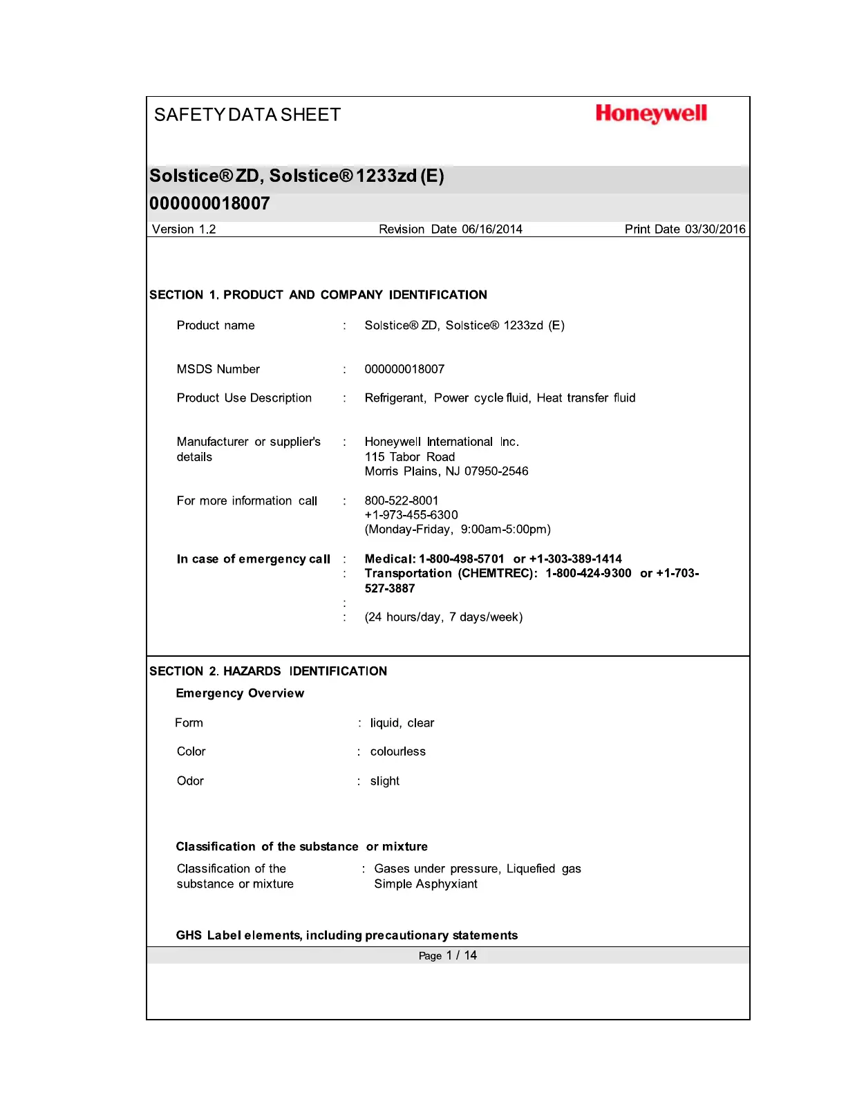 York YZ MODEL A - APPENDIX - MATERIAL SAFETY DATA SHEETS