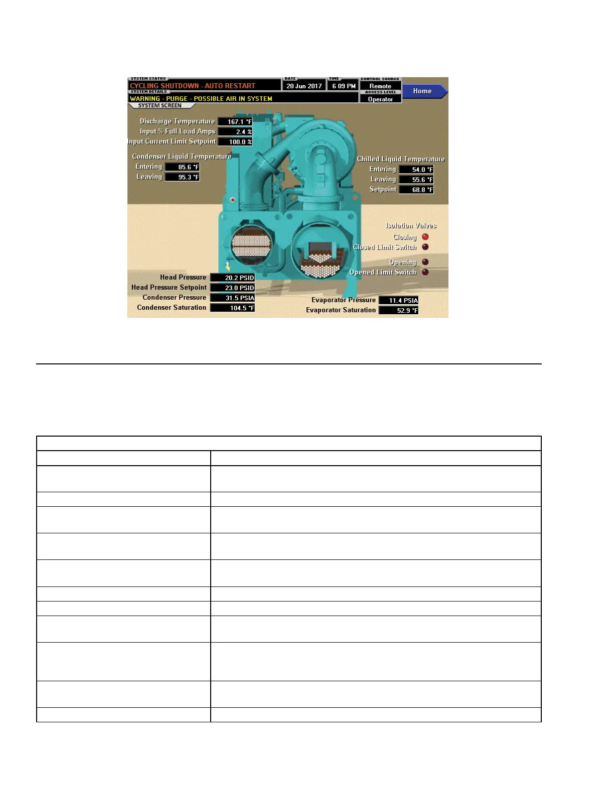 Chilled Liquid Temperature - Leaving Displays the temperature of the liquid as it leaves the evaporator.