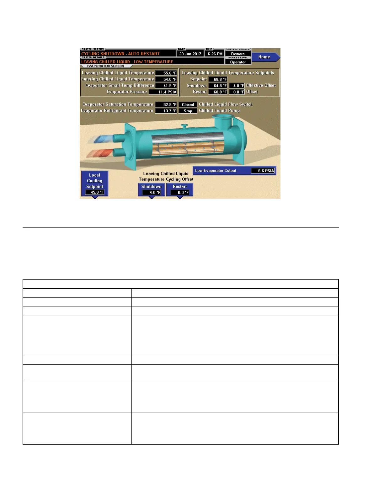 Displays the Leaving Chilled Liquid Temperature at which the chiller will shut-