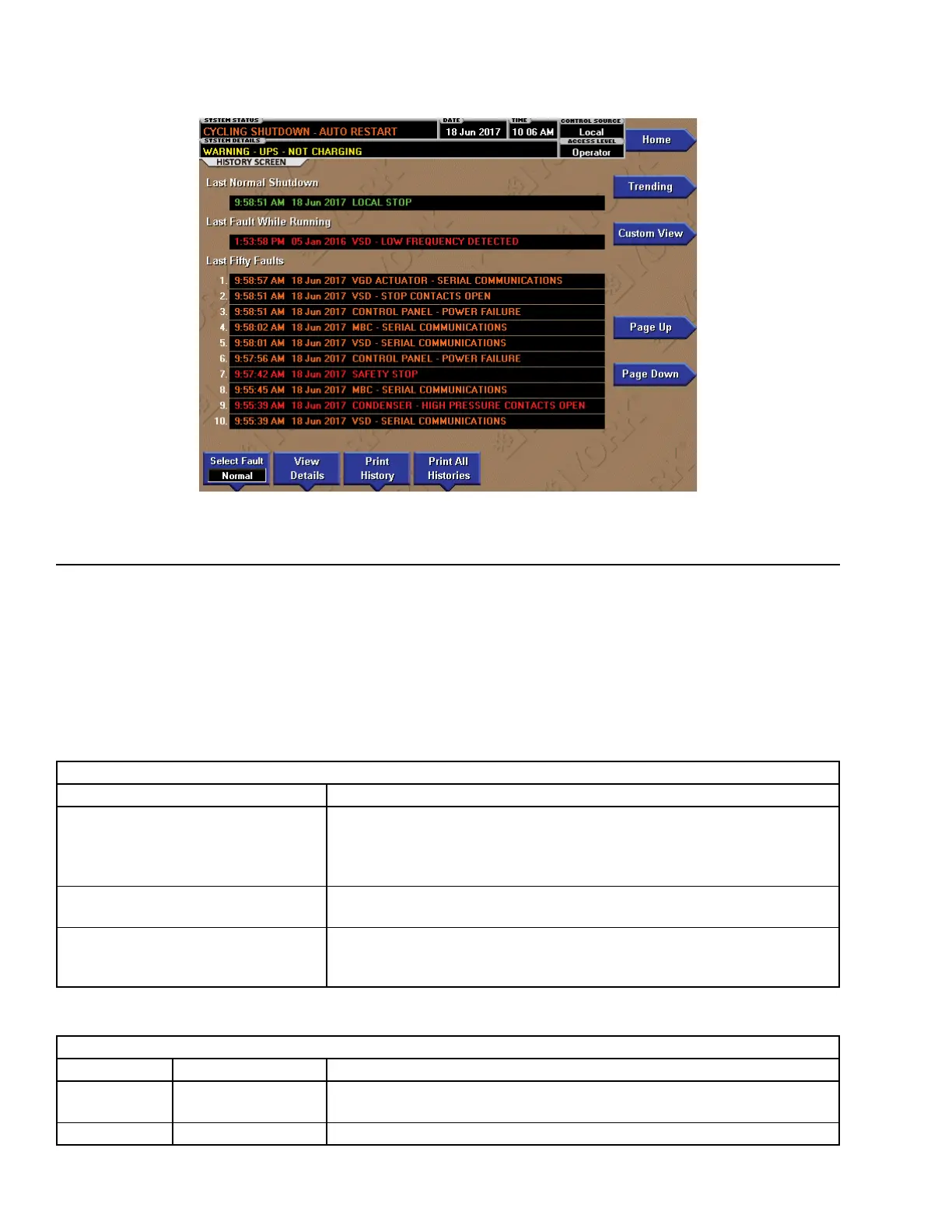 This screen allows the user to browse through the faults.