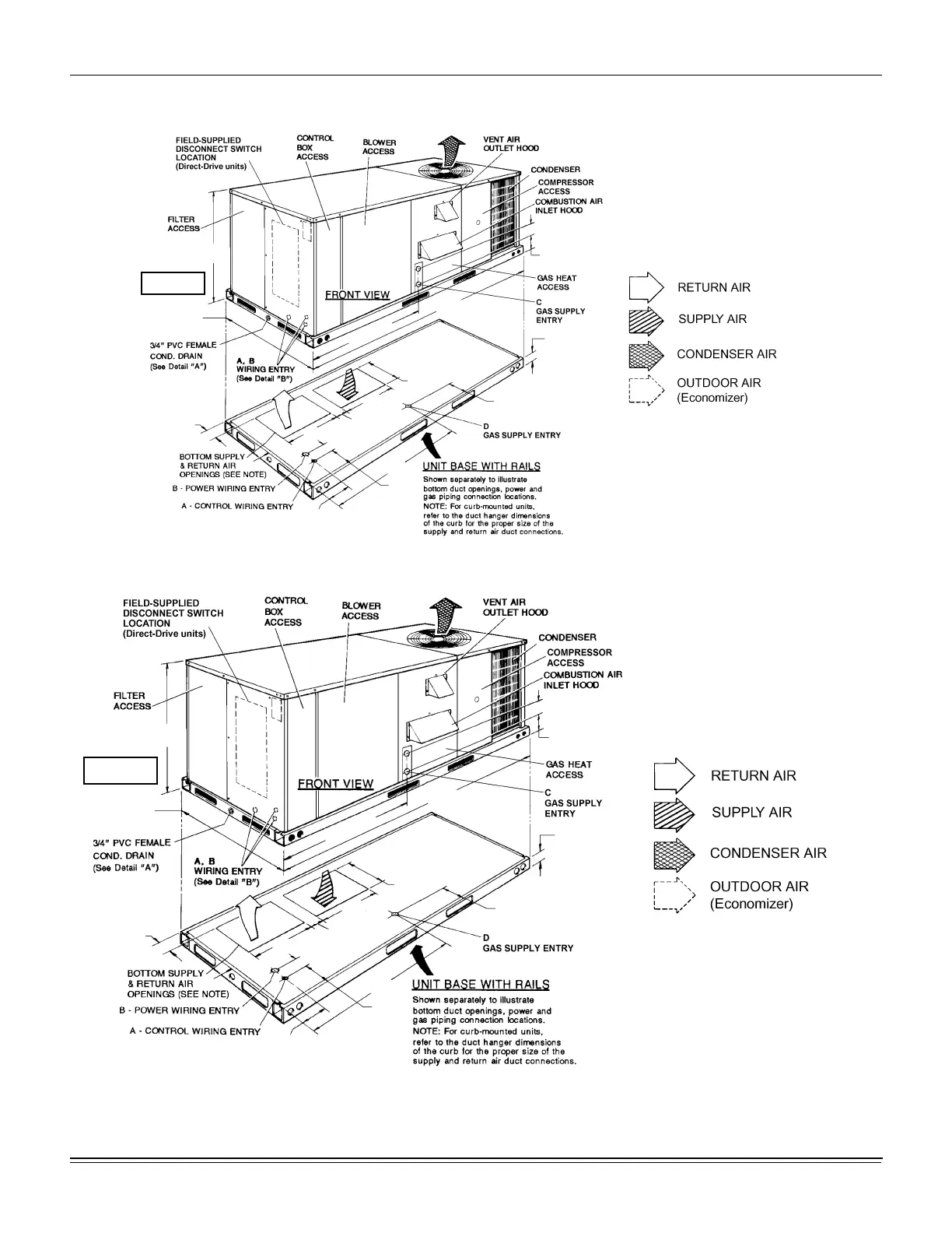York ZF048 - Unit Dimensions (3 - 6.3 Ton Cooling Only;Electric Heat) Front; Unit Dimension (3 - 6.3 Ton Cooling;Gas Heat) Front View