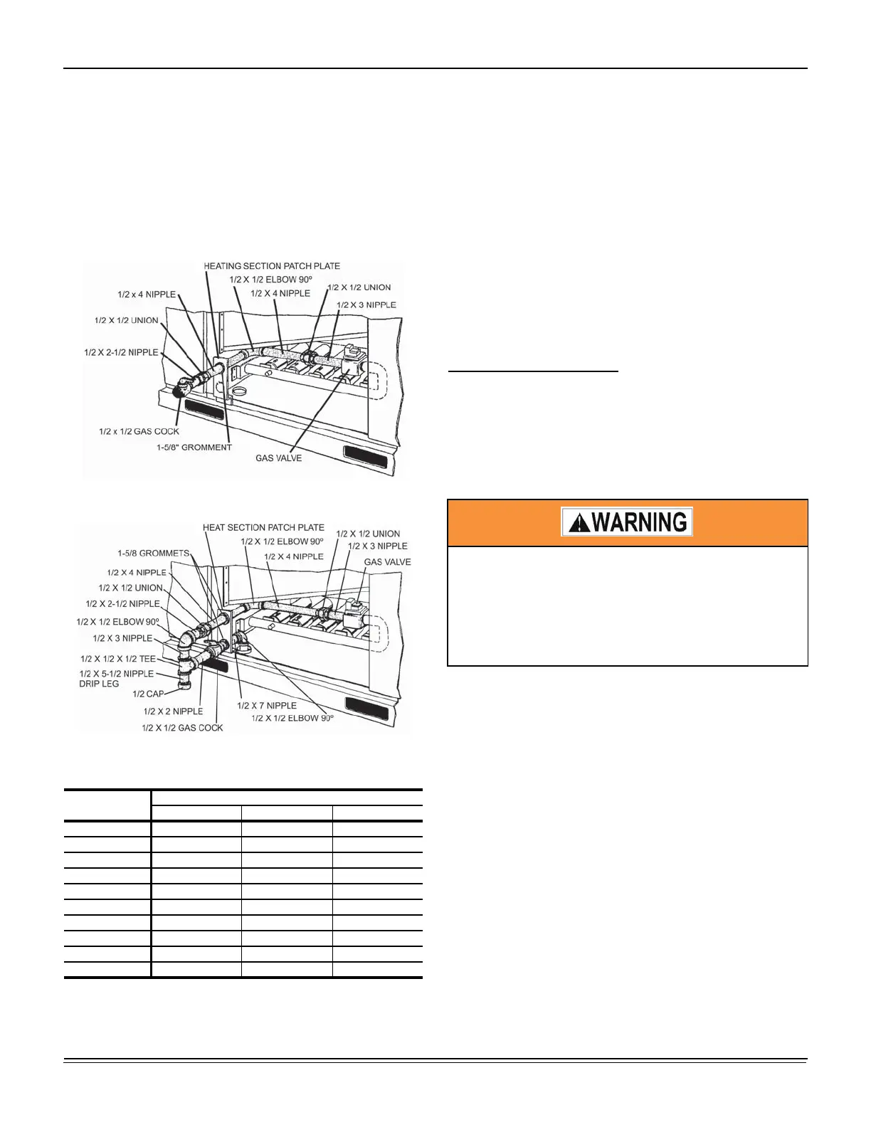 minimum diameter for gas piping. All units require a 1/2