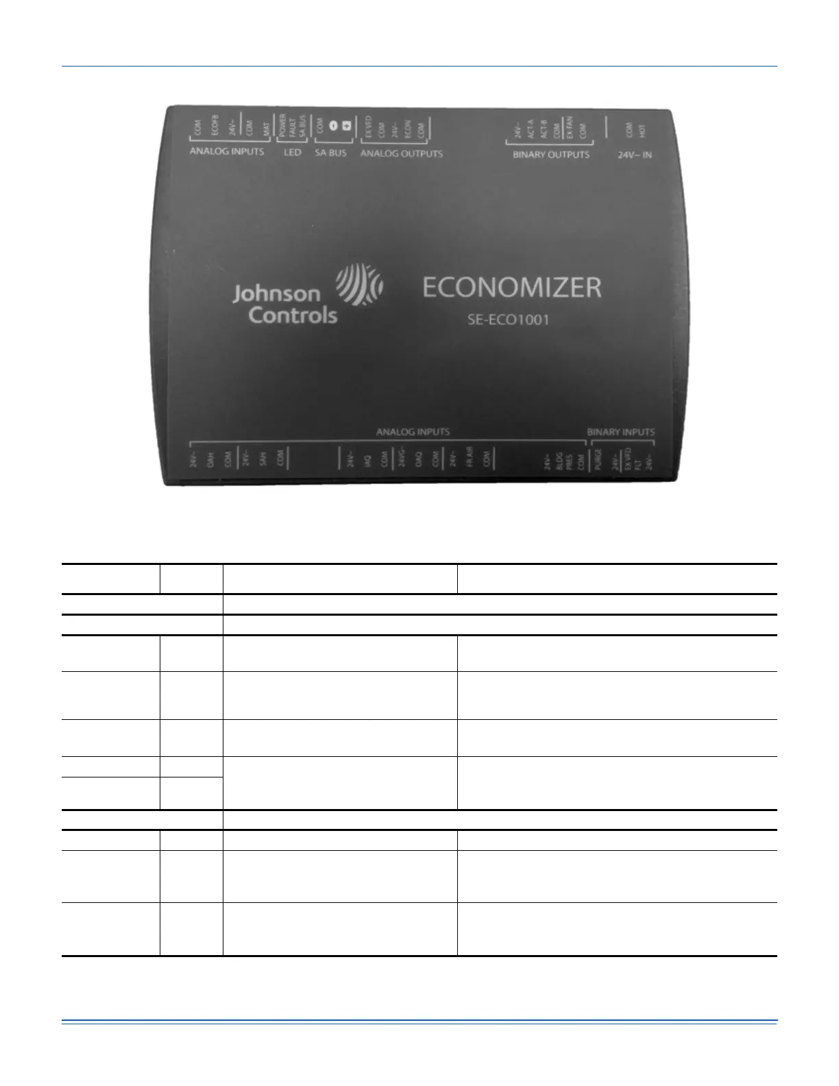 Table 14: Smart Equipment™ Economizer Board Details