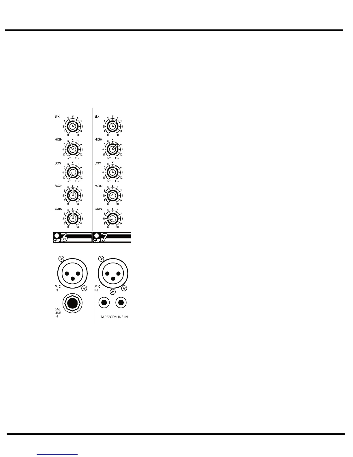 light. Reduce the GAIN setting and/or the EQ boosts if CLIP activity is excessive. (Note: center