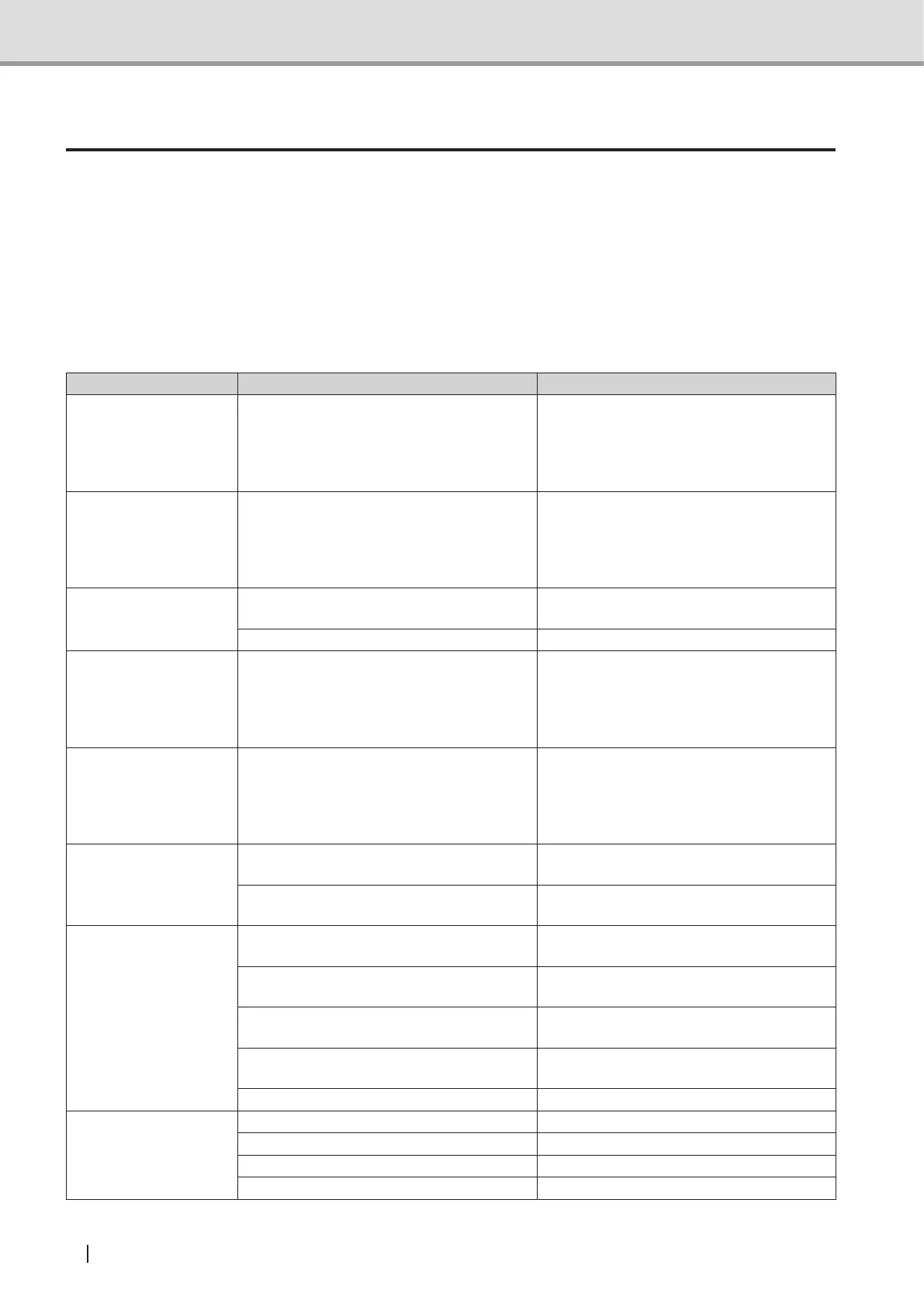 Symptom Possible cause Action