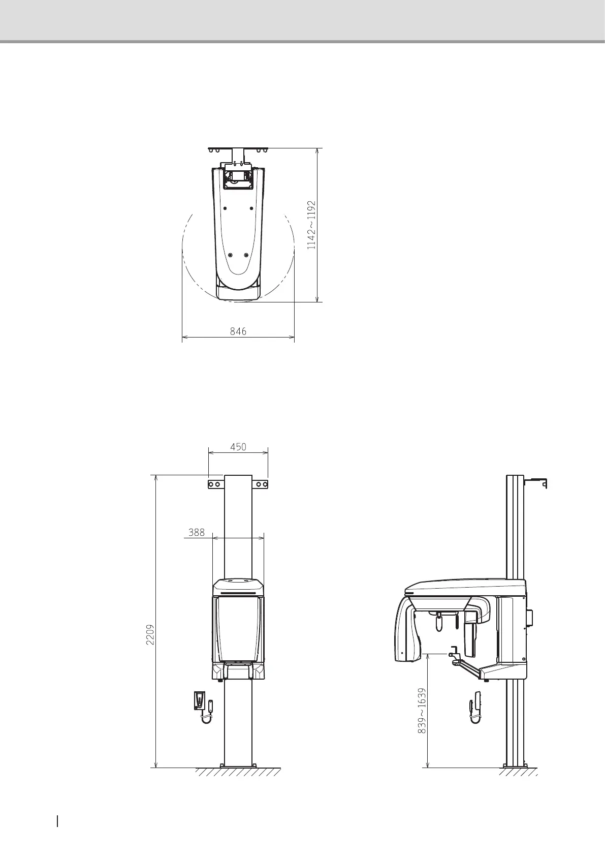YOSHIDA XP73 - Dimensional Drawing; Standing Position Wall-Mount: Panoramic Type