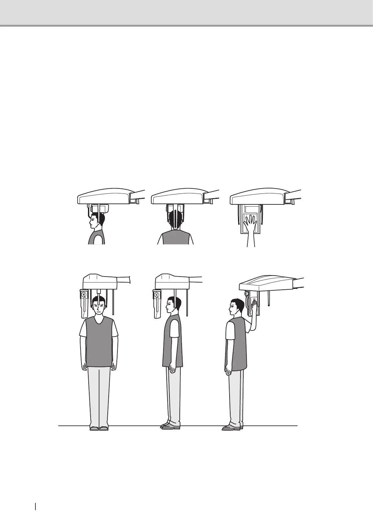 the wide-spread palm on the carpus support, stand the patient at the side of the equipment.