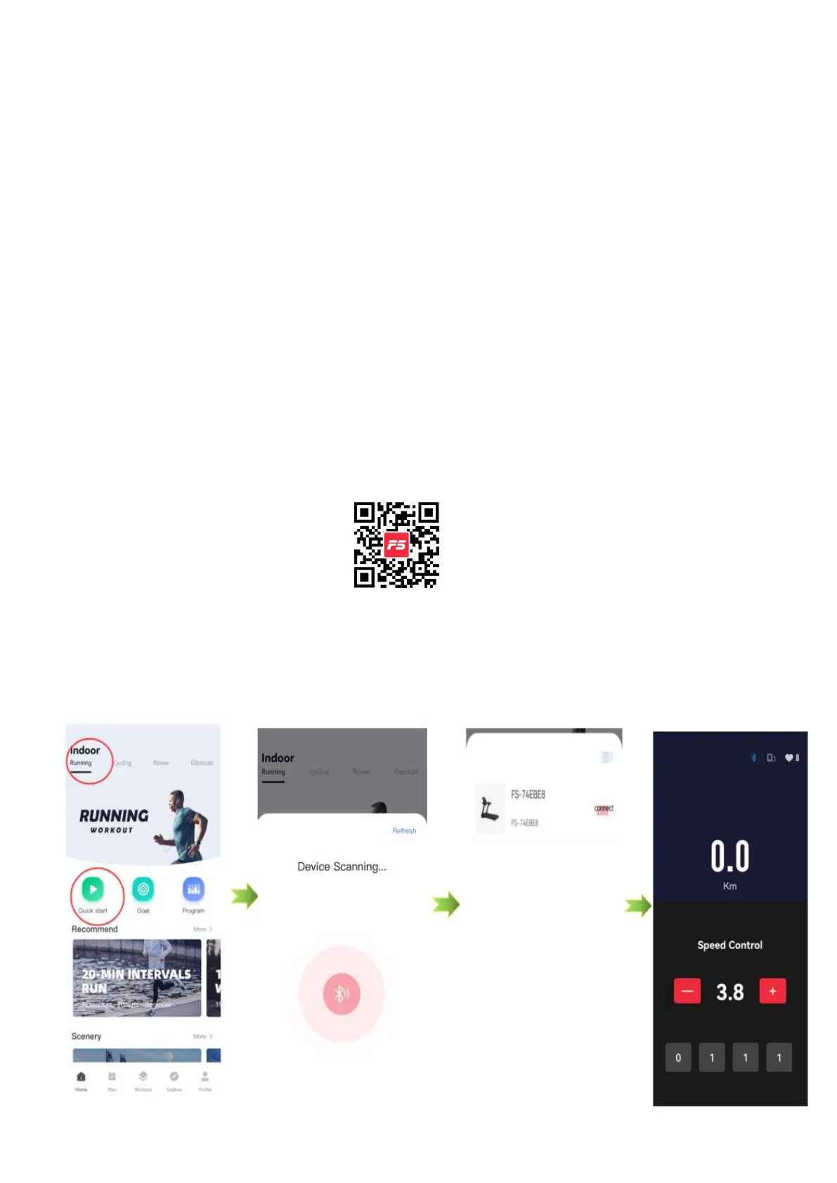 the treadmill connection power in advance and turn on the Bluetooth on the